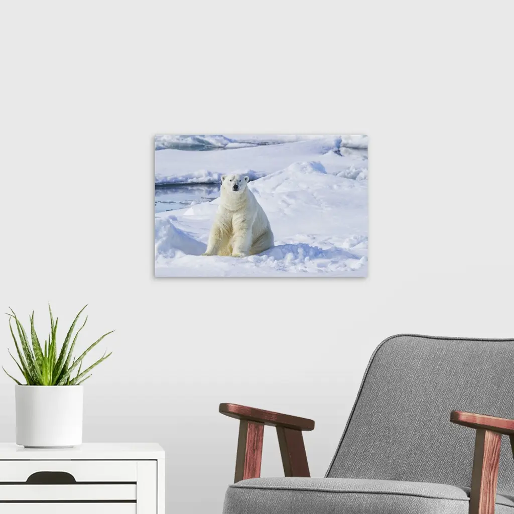 Adult male polar bear (Ursus maritimus), on multi-year ice floes off the eastern coast of Spitsbergen in the Svalbard, Norway