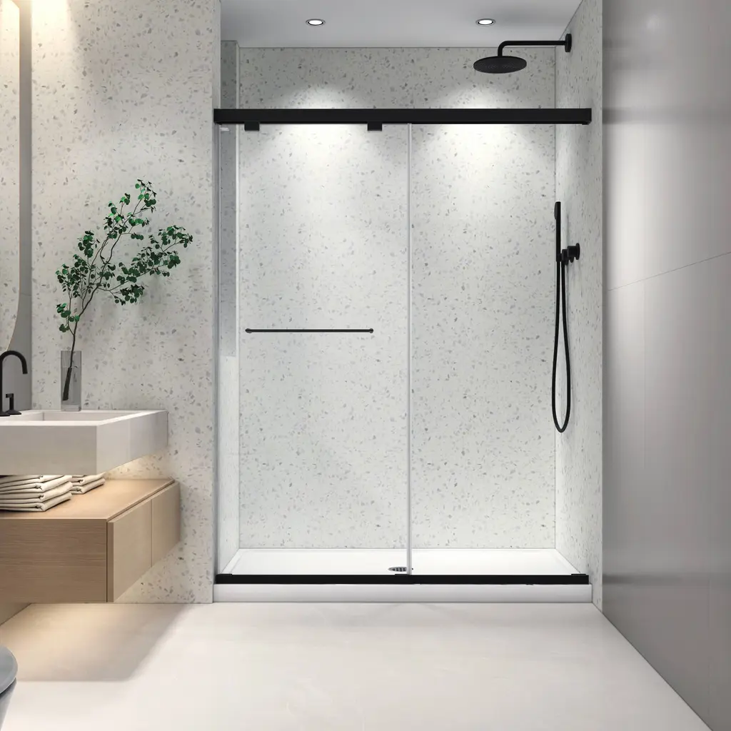 Advanced Double Sliding Shower Door With Innovative Functions For Enhanced Bathroom Experience - Matte Black