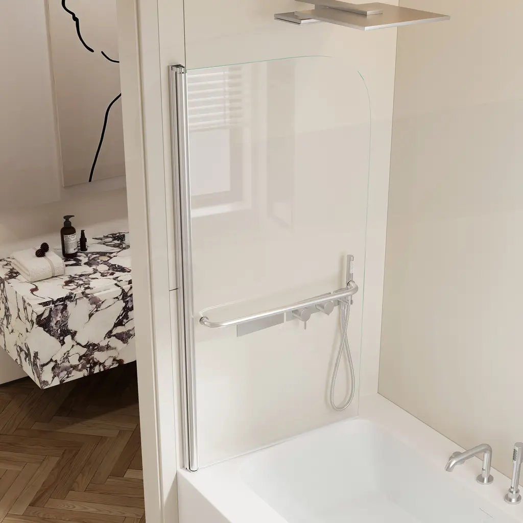 DescriptionThis shower door is a remarkable addition to your bathroom, offering both style and functionality. The tempered glass ensures durability and safety, while the rotation shaft design provides easy access and a modern look. The sleek finish adds an elegant touch, enhancing the overall aesthetic of your bathroom. It is engineered to withstand daily use and moisture, maintaining its quality over time. The door creates a private and relaxing showering experience, making your bathroom a haven of comfort and style. Whether for a small or large bathroom, this shower door is the perfect choice for those seeking a sophisticated and practical solution. Product Features The tempered glass is highly resistant to breakage and damage, ensuring long-term safety and use. The rotation shaft allows for smooth and effortless opening and closing of the door. The stylish finish gives the door a contemporary and attractive appearance. It is designed to prevent water leakage, keeping your bathroom dry and clean. The door is easy to install and maintain, saving you time and effort.