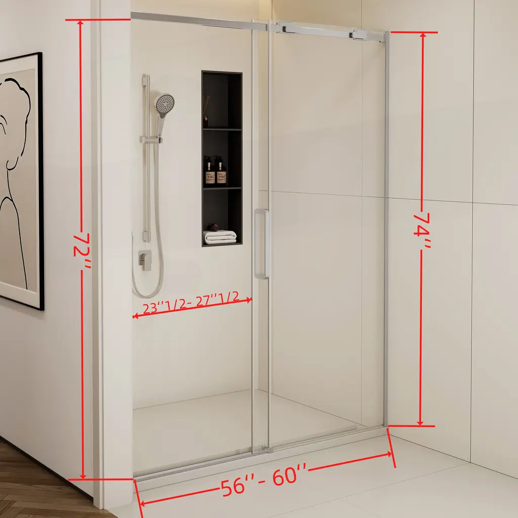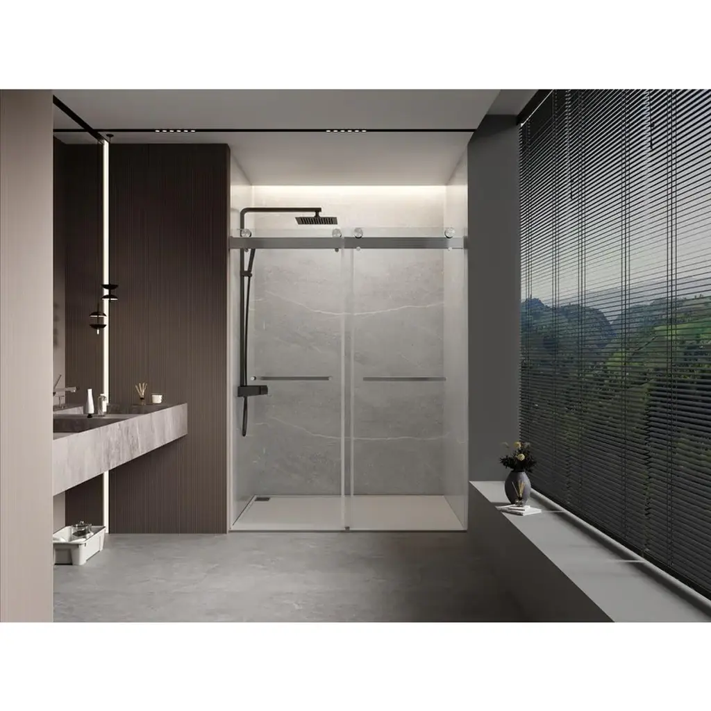 DescriptionThis single sliding shower door is a revolutionary addition to your bathroom. It offers a seamless and smooth operation, ensuring a hassle-free experience. The tempered glass provides excellent clarity and durability, while the unique design of the guide rail and pulley system guarantees stability and safety. The anti-derailment feature adds an extra layer of protection, giving you peace of mind. The door's sleek and modern appearance will transform your bathroom into a stylish and functional space. It is a perfect combination of form and function, making your daily shower routine more enjoyable and convenient. Product Features The tempered glass is highly resistant to breakage and provides clear visibility, ensuring a pleasant showering experience. The innovative guide rail and pulley system allows for smooth and quiet sliding, reducing noise and friction. The anti-derailment design of the pulley ensures the door stays on track, enhancing safety during use. The sleek and modern appearance of the shower door adds a touch of elegance to your bathroom decor. The door is designed to be easy to install and maintain, saving you time and effort.