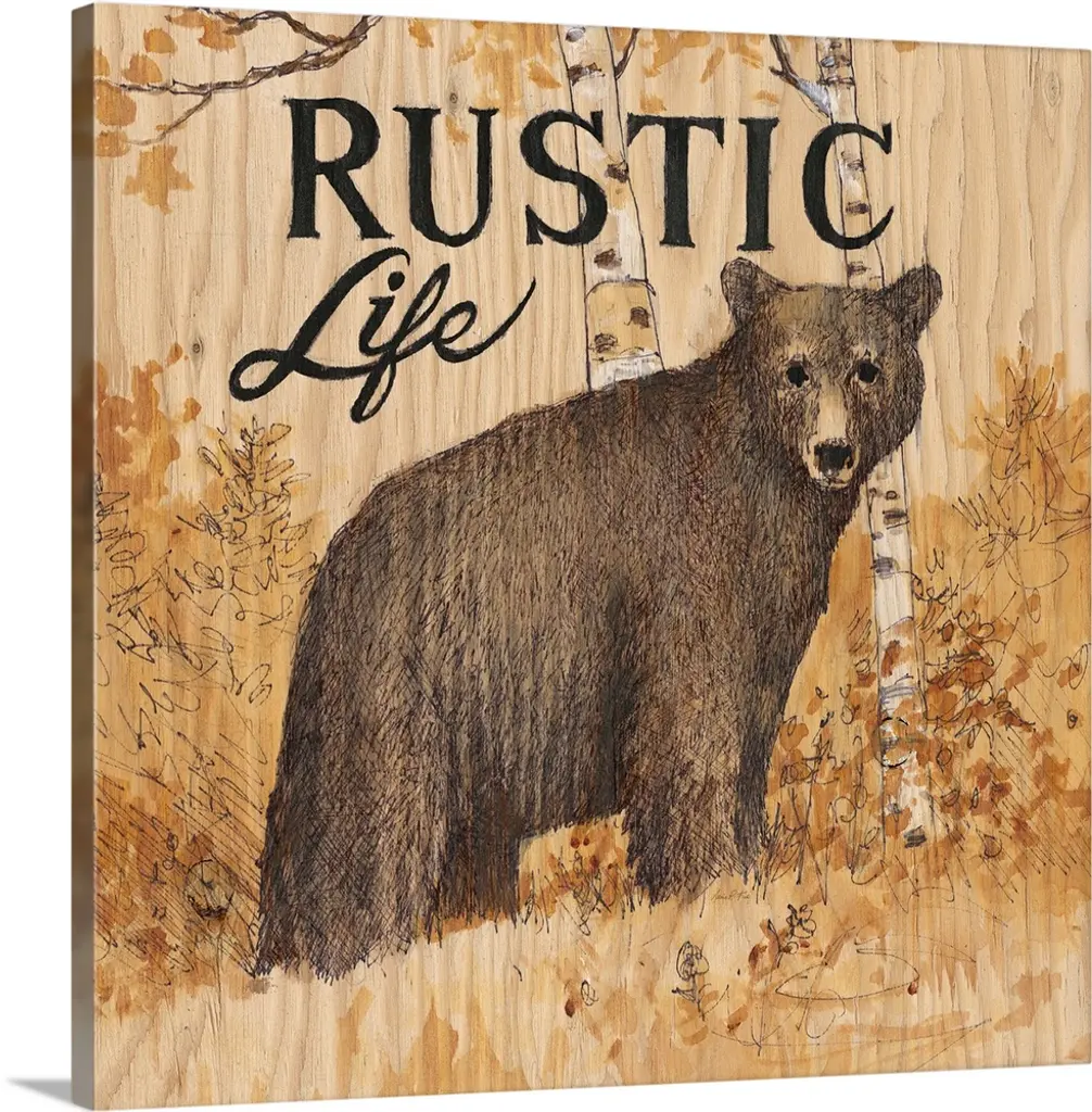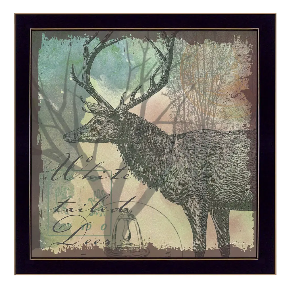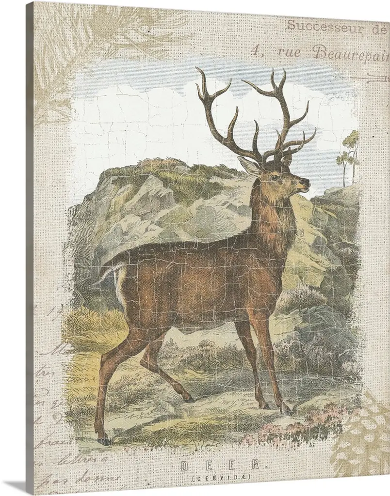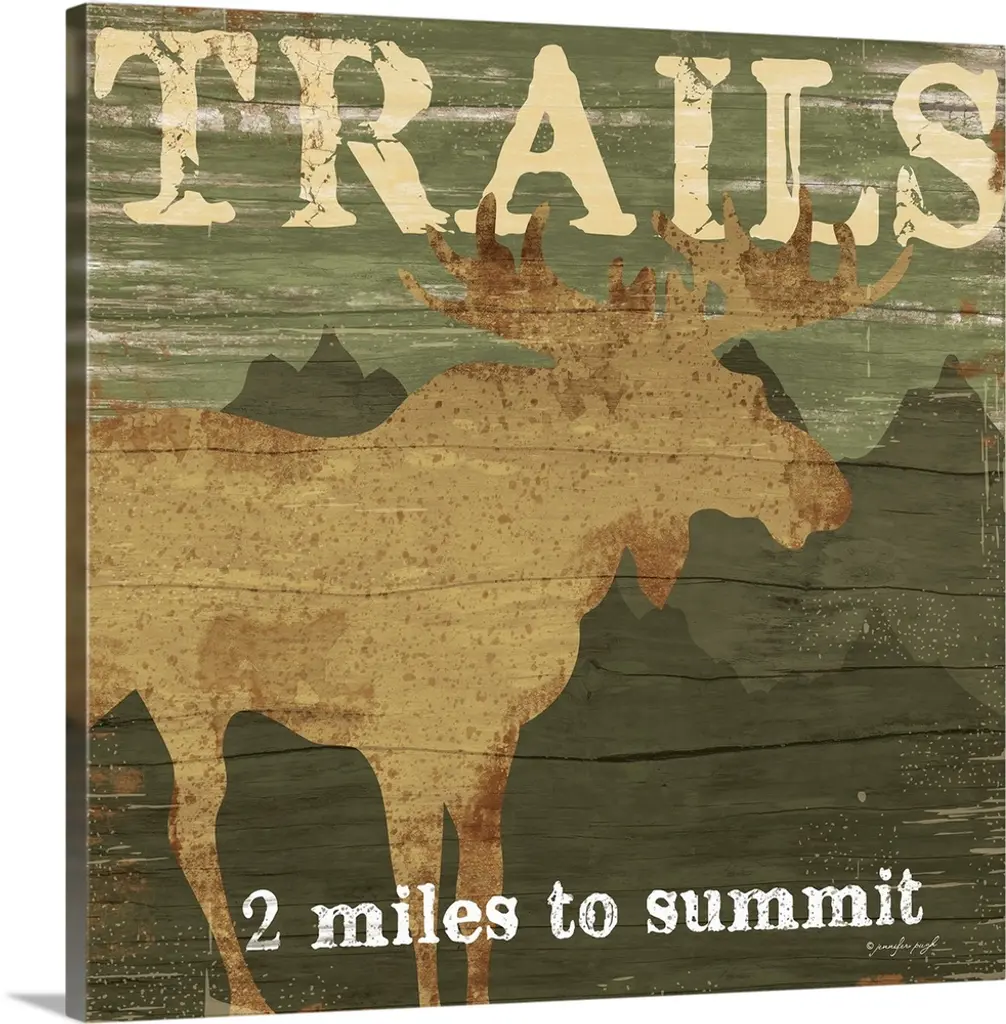 Square cabin decor with a deer and wilderness painted on a faux wood background with "Adventure" written at the top in blue.