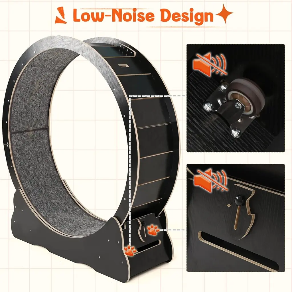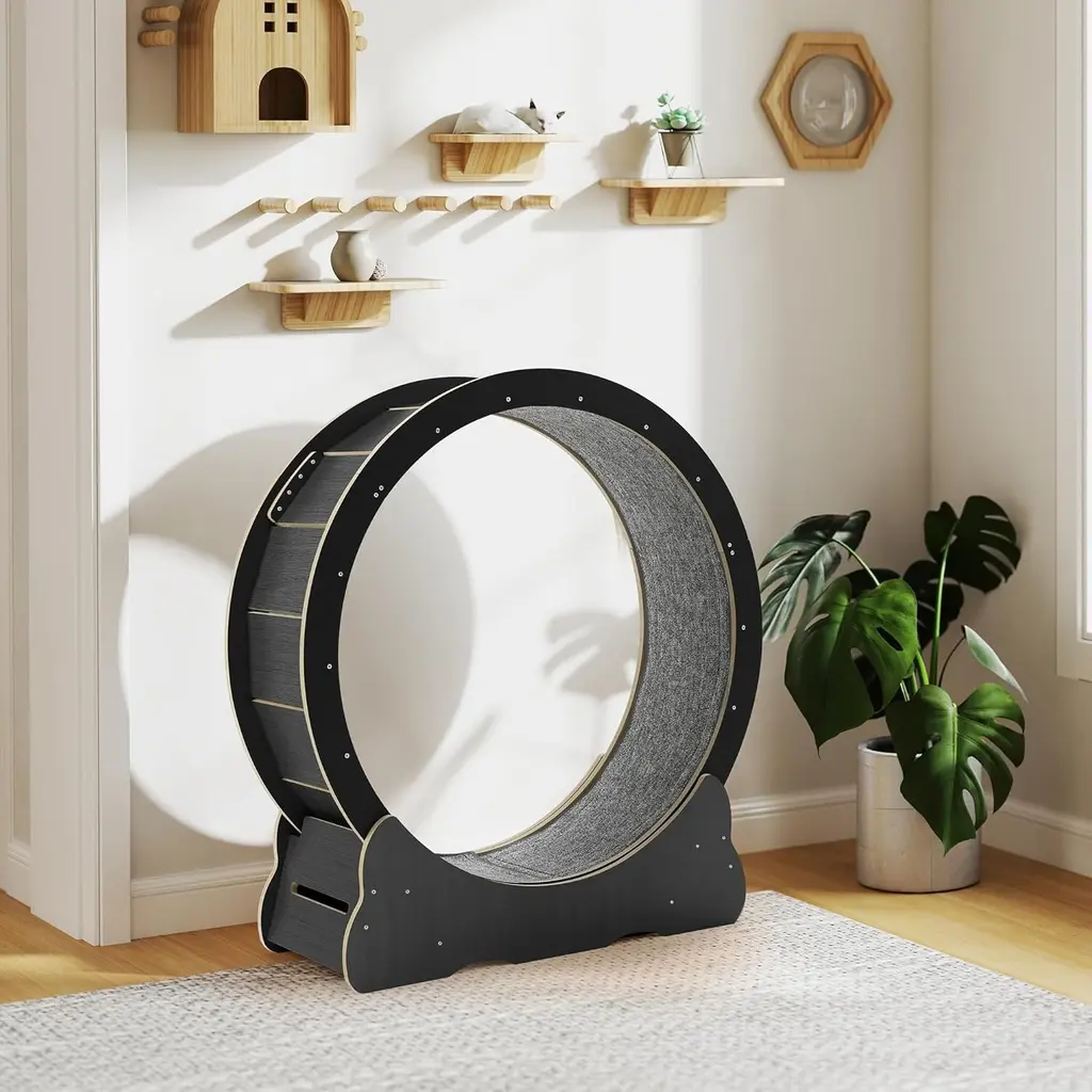Aecojoy Large Wooden Cat Exercise Wheel Cat Treadmill Cat Running Wheel Silent Toy - 43.3" Black
