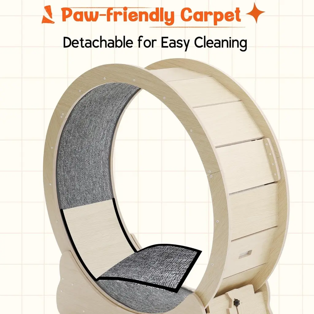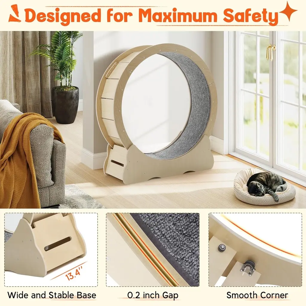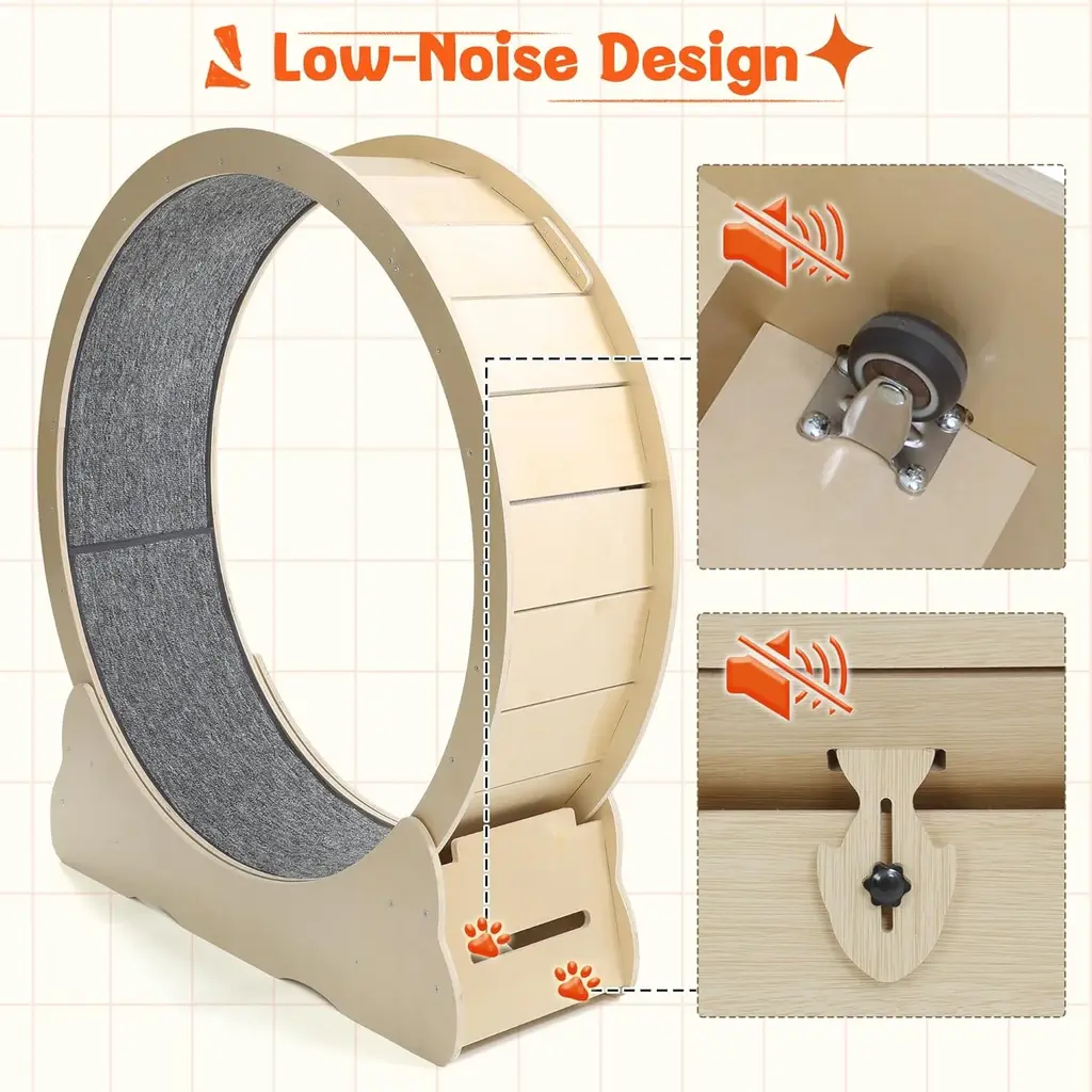 Aecojoy Large Wooden Cat Exercise Wheel Cat Treadmill Cat Running Wheel Silent Toy - 43.3" Brown