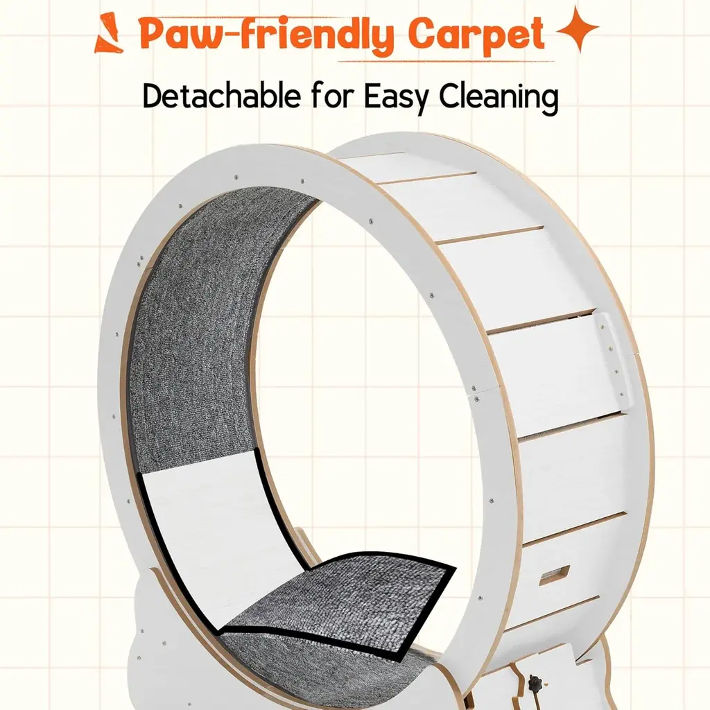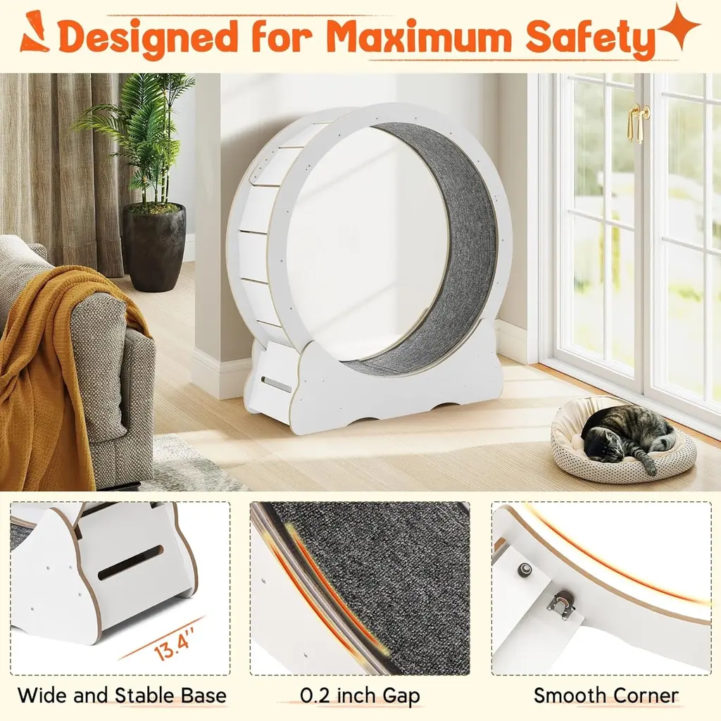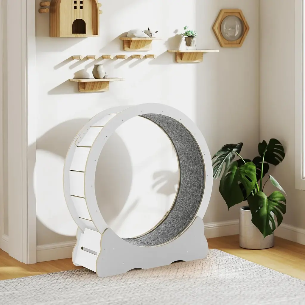 Aecojoy Large Wooden Cat Exercise Wheel Cat Treadmill Cat Running Wheel Silent Toy - 43.3" White
