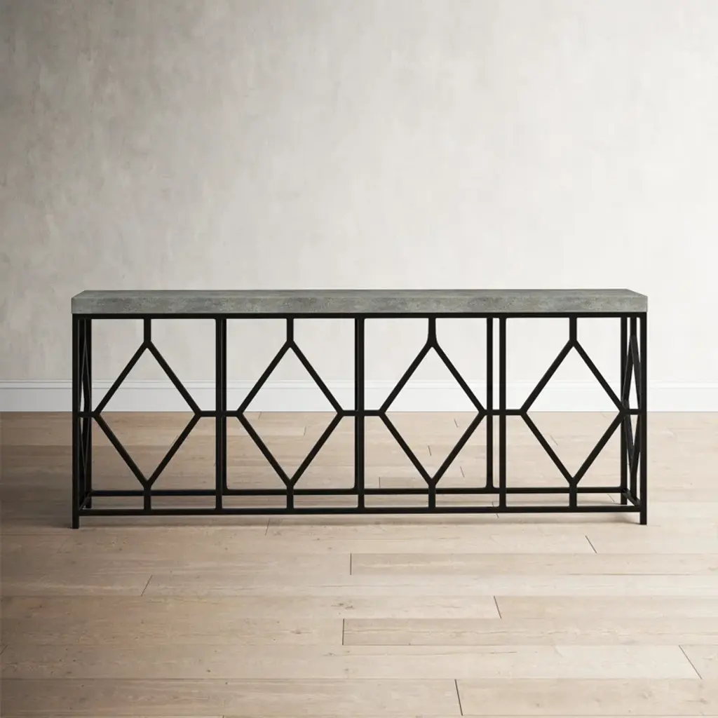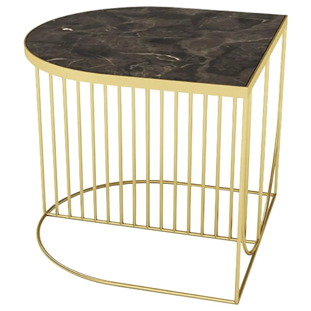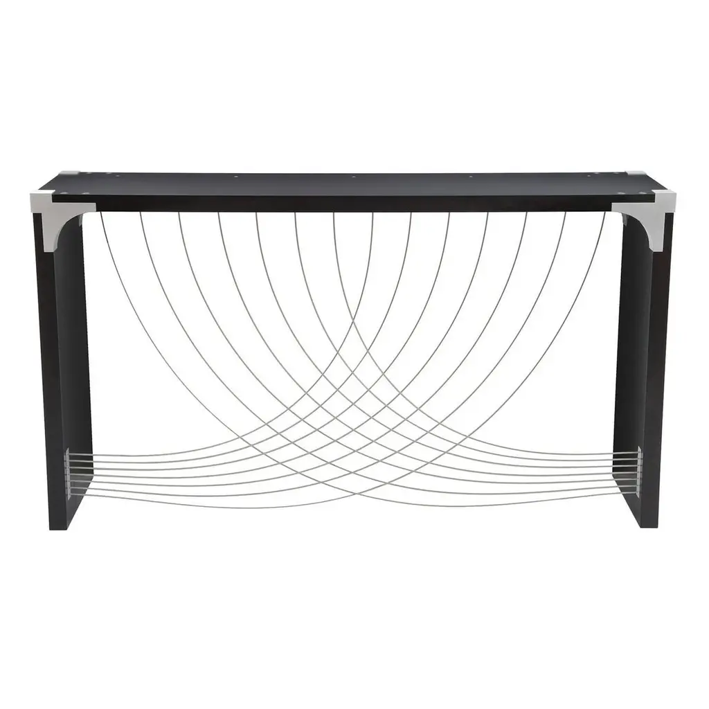 Named after the Latin word for Zeus' invincible breastplate battle shield, the Aegis Collection is defined by balanced threading of wires joined to form a sumptuous hourglass shape. This elongated-oval console boasts a pink copper-plated iron structure enclosing the gold-plated wire design held elegantly by three strips of polished brass. This exclusive design is completed by a Golden Lighting marble top whose emerald green color with bright lime green accents brings together the chromatic gradients of this magnificent statement piece.