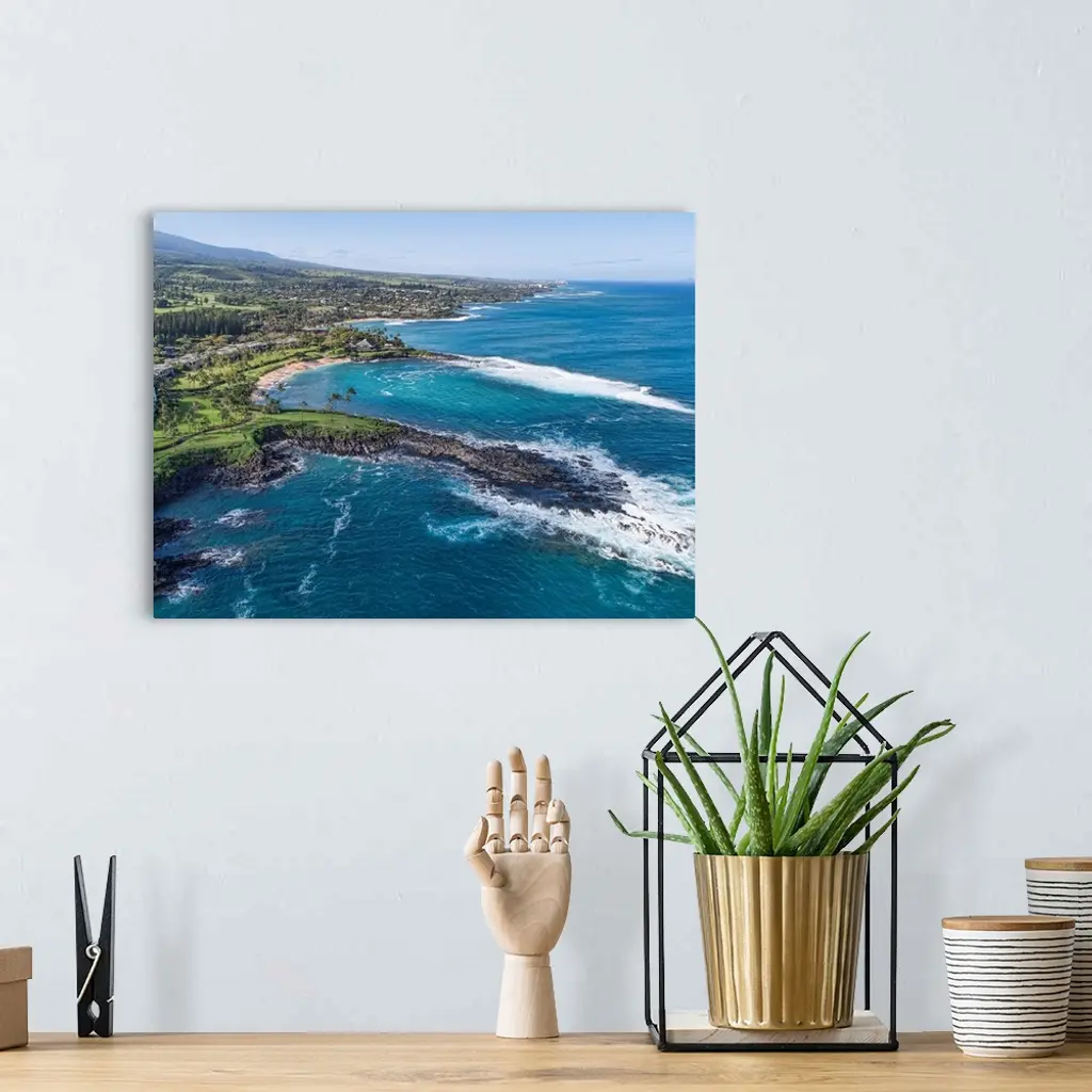 Stunning Aerial capture of Kapalua Bay, Napili Bay, and Honokeana Bay on the Hawaiian Island of Maui, USA