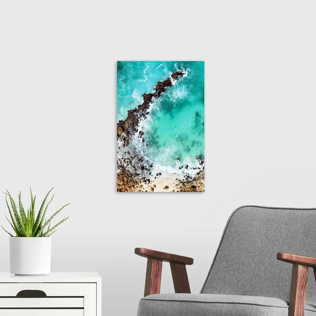 Aerial Summer - Aqua Rocky Beach wall art for home and office decor. Discover canvas art prints, photos, mural, big canvas art and framed wall art in GreatBigCanvas.com's varied collections.