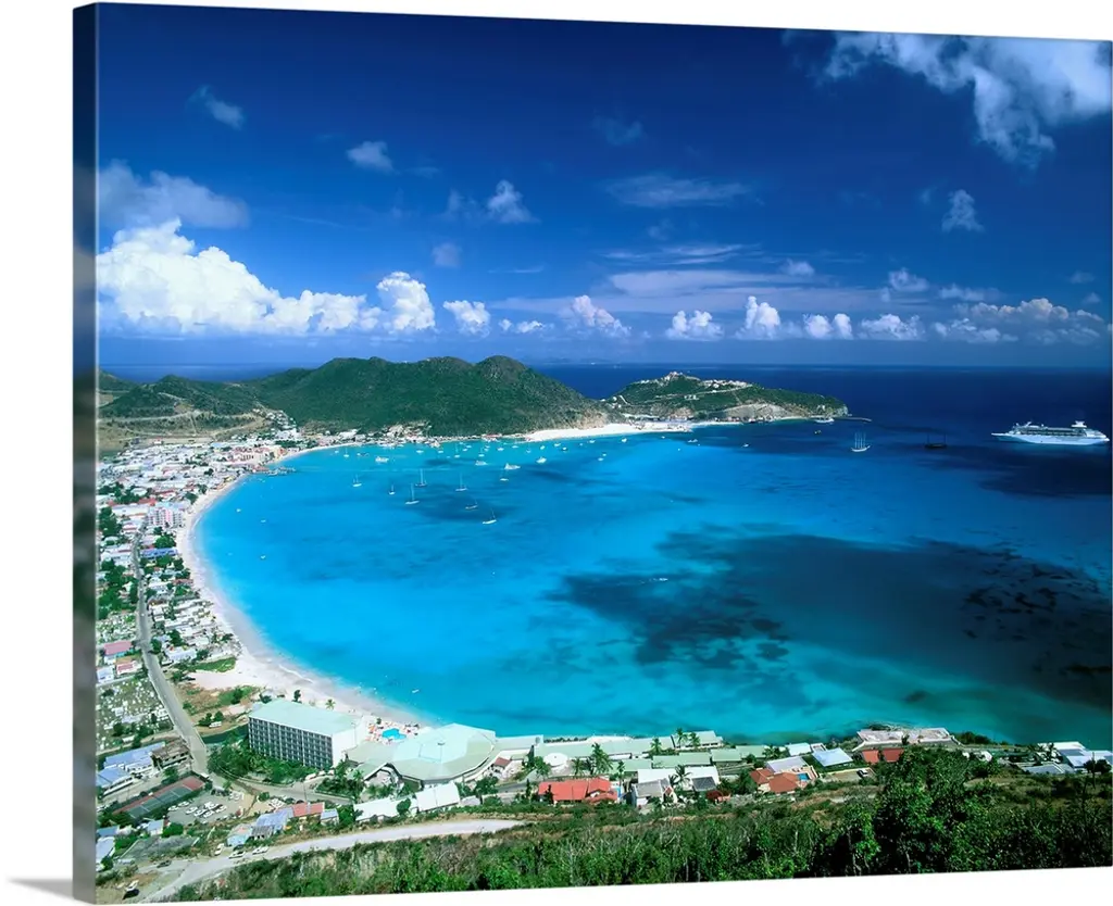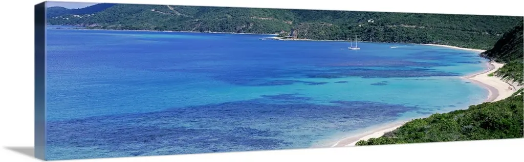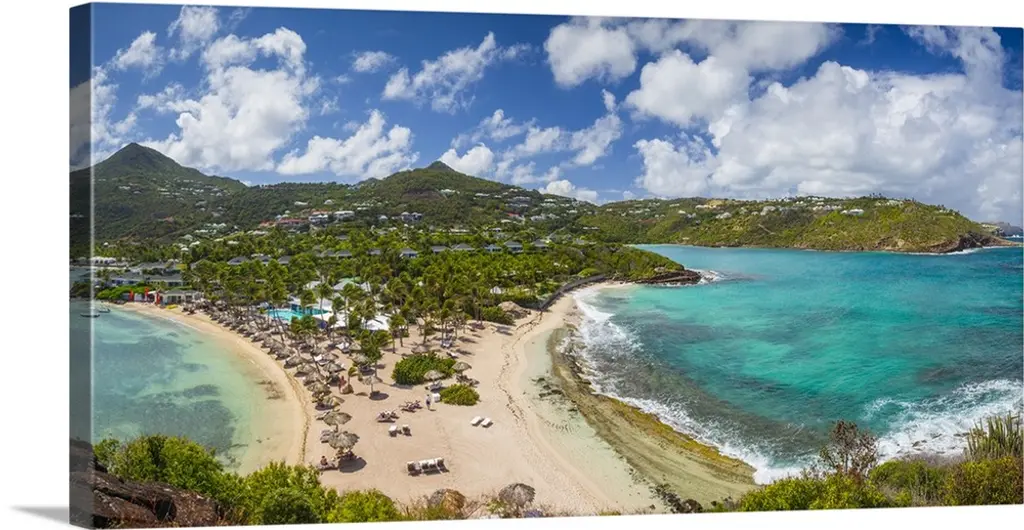 Aerial view by drone of Hermitage Bay and Pearns Point, Antigua, Antigua and Barbuda, Leeward Islands, West Indies,