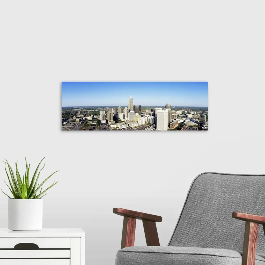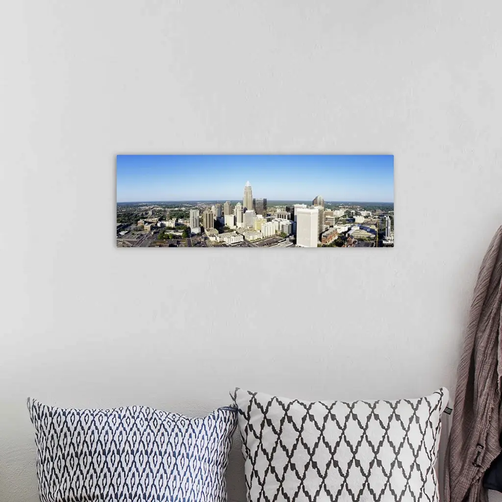 Aerial view of a city Charlotte Mecklenburg County North Carolina wall art for home and office decor. Discover canvas art prints, photos, mural, big canvas art and framed wall art in GreatBigCanvas.com's varied collections.