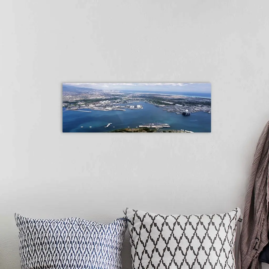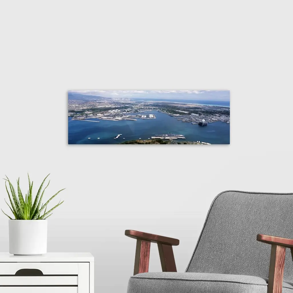 Aerial view of a harbor, Pearl Harbor, Honolulu, Oahu, Hawaii wall art for home and office decor. Discover canvas art prints, photos, mural, big canvas art and framed wall art in GreatBigCanvas.com's varied collections.