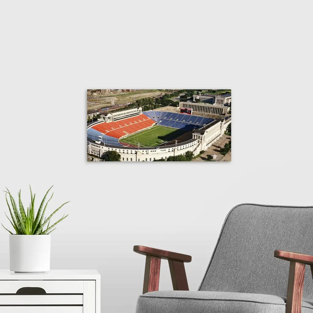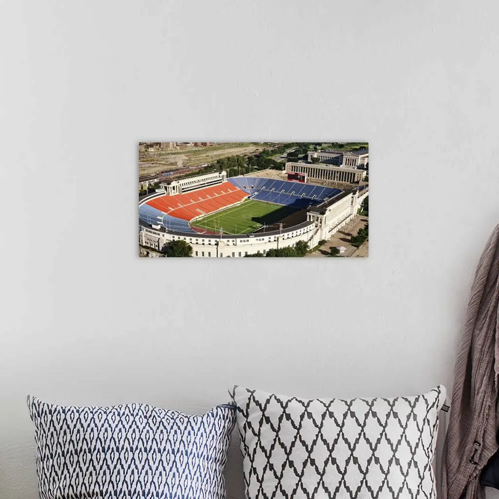 Photo on canvas of the oldest NFL stadium which home to the Chicago Bears seen from above.