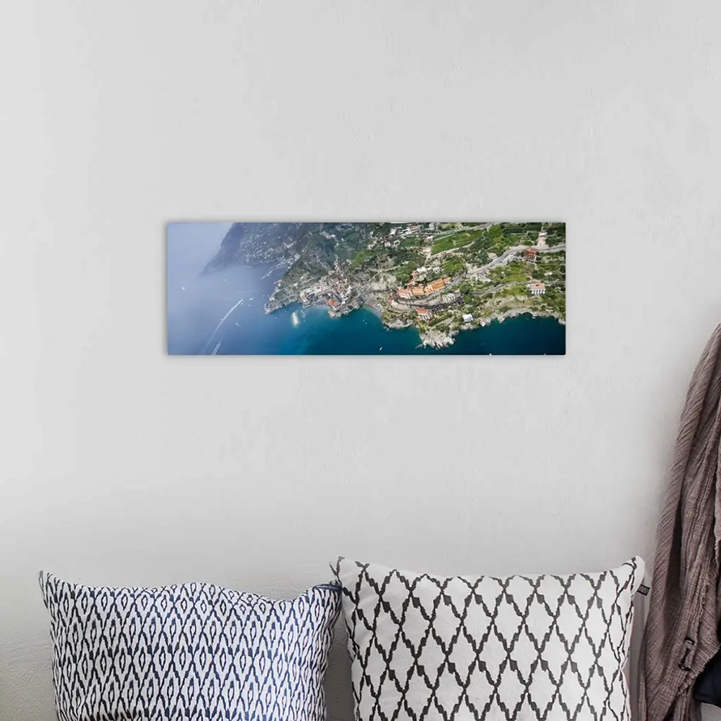 Aerial view of a town Atrani Amalfi Coast Salerno Campania Italy wall art for home and office decor. Discover canvas art prints, photos, mural, big canvas art and framed wall art in GreatBigCanvas.com's varied collections.