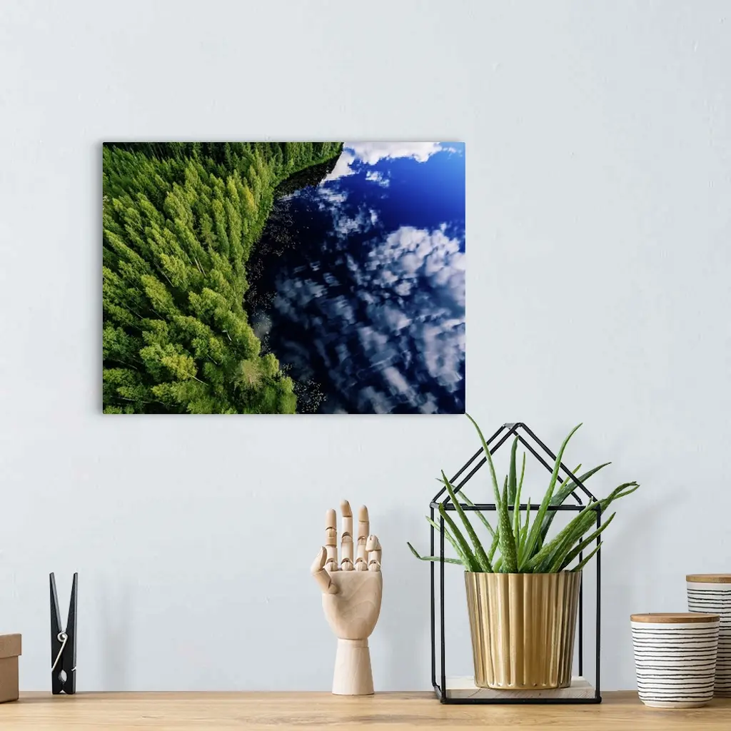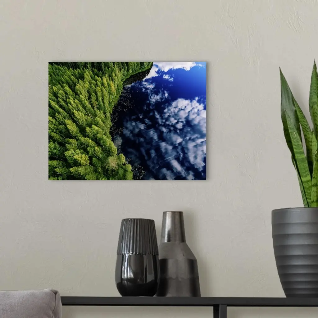 Aerial View Of Blue Lake And Green Forests On A Sunny Summer Day In Finland