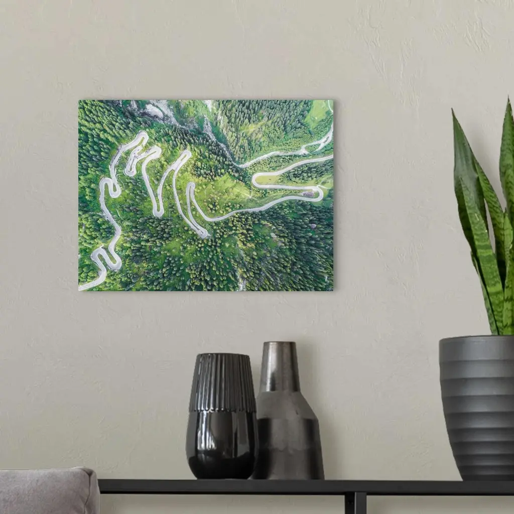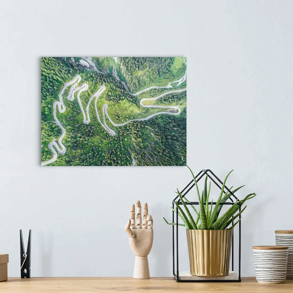 Aerial View Of Curves Of The Road Between Woods, Maloja Pass, Engadine, Switzerland