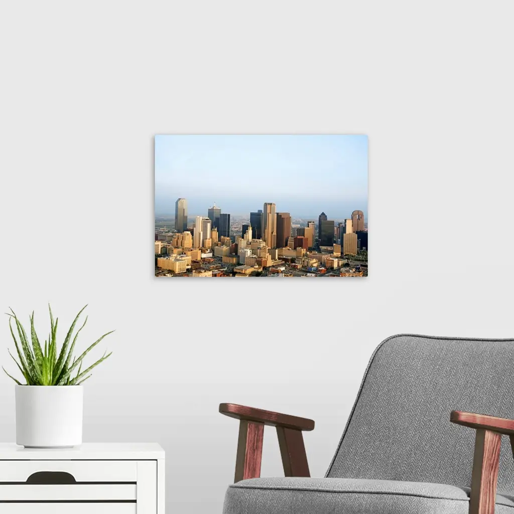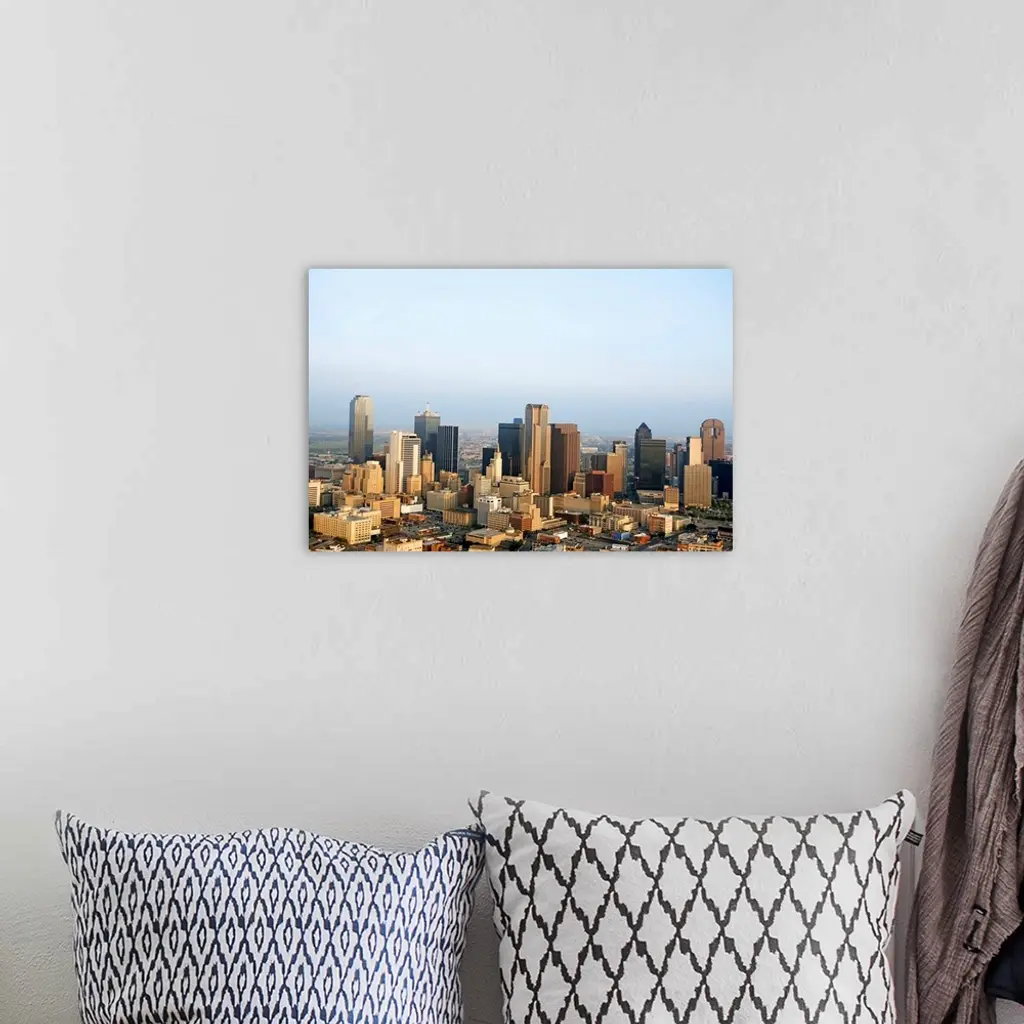 Aerial view of downtown Dallas, Texas wall art for home and office decor. Discover canvas art prints, photos, mural, big canvas art and framed wall art in GreatBigCanvas.com's varied collections.