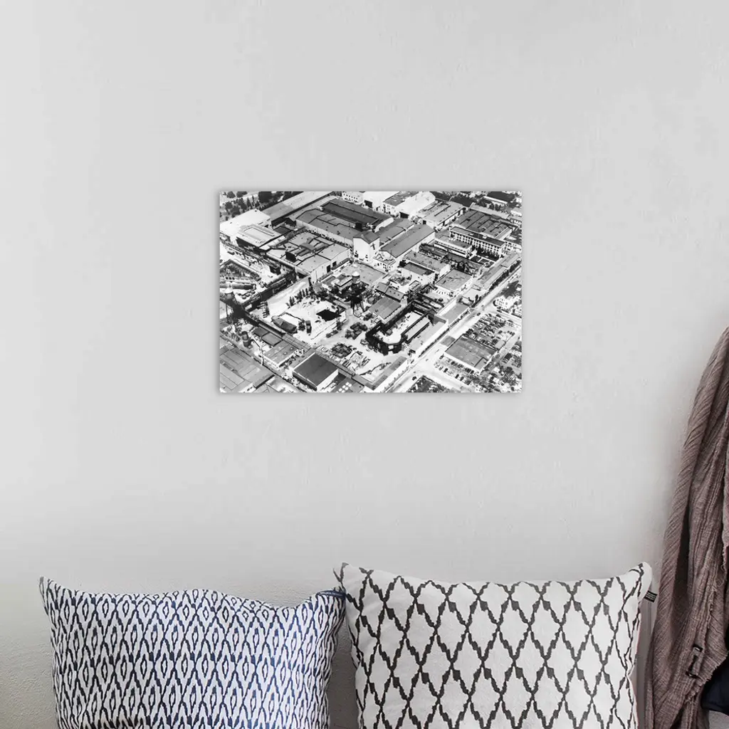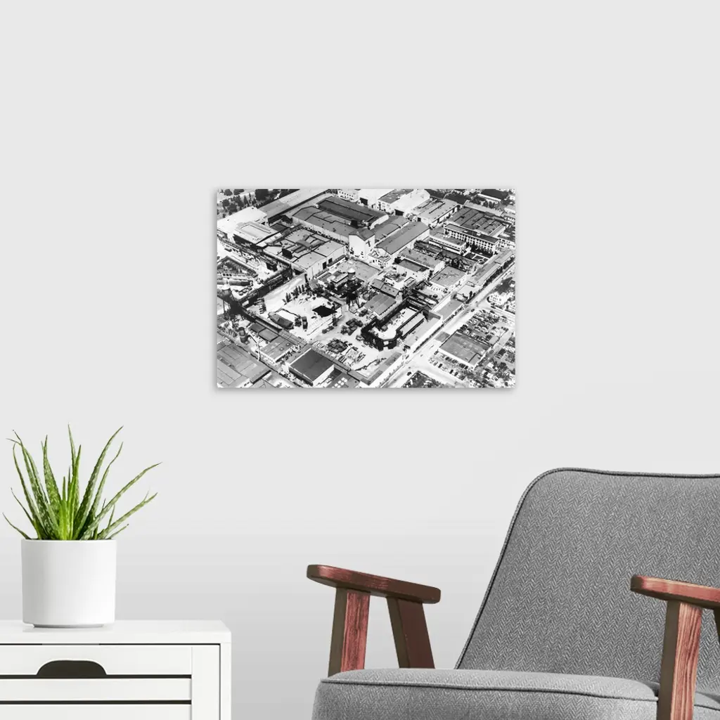 Aerial view of Paramount Studios in Hollywood, c. 1947. The lot covers 48 acres and employed thousands with an annual expenditure $40 million, for payroll, materials, and services.