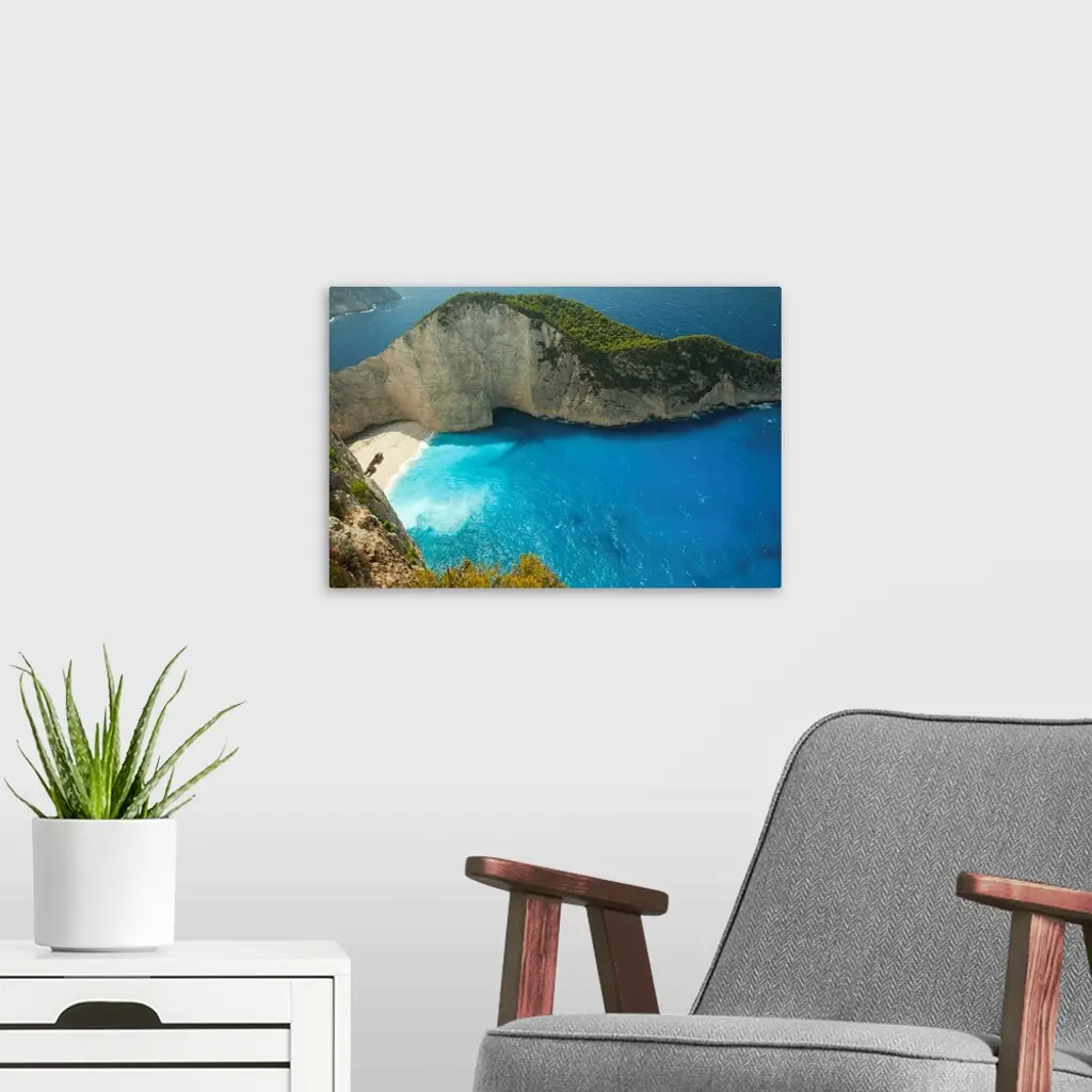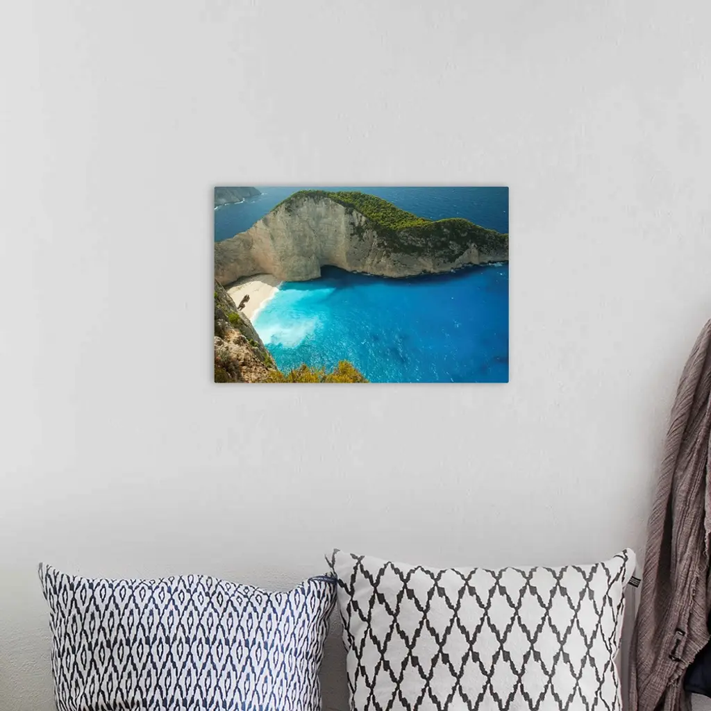 Aerial view of shipwreck bay, Zakynthos, Ionian Islands, Greece wall art for home and office decor. Discover canvas art prints, photos, mural, big canvas art and framed wall art in GreatBigCanvas.com's varied collections.