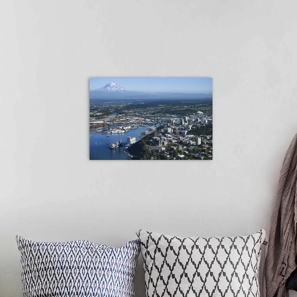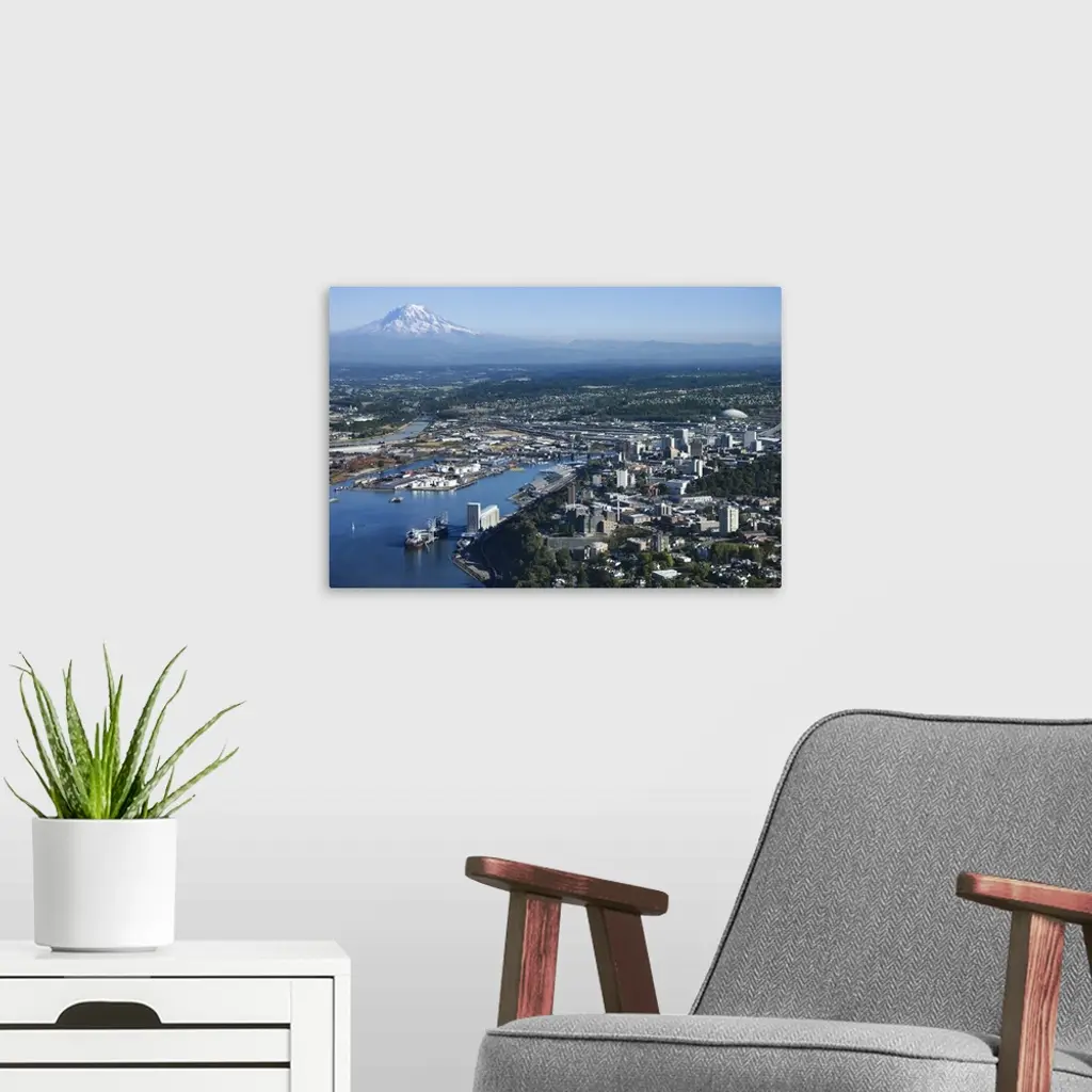 Aerial View Of Tacoma And Mount Rainier, Washington State