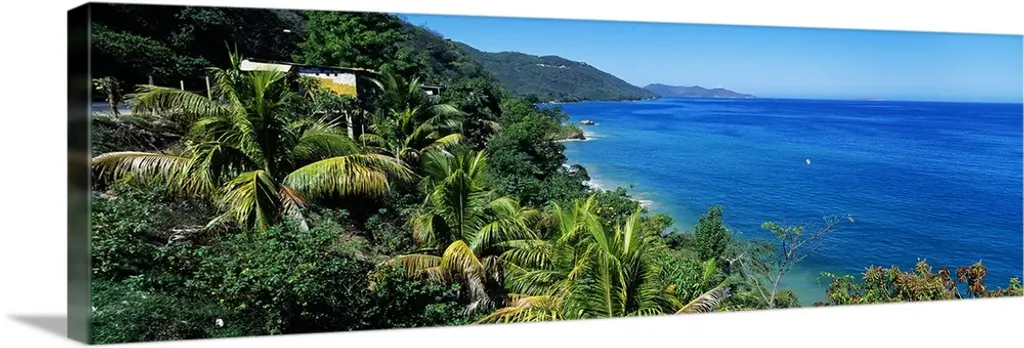 Aerial view of trees along a coast, Tahiti, French Polynesia wall art for home and office decor. Discover canvas art prints, photos, mural, big canvas art and framed wall art in GreatBigCanvas.com's varied collections.