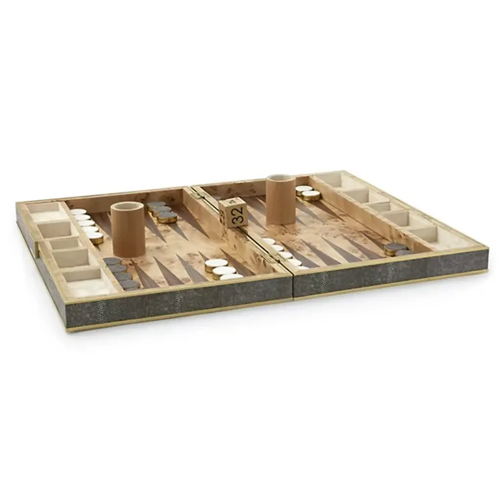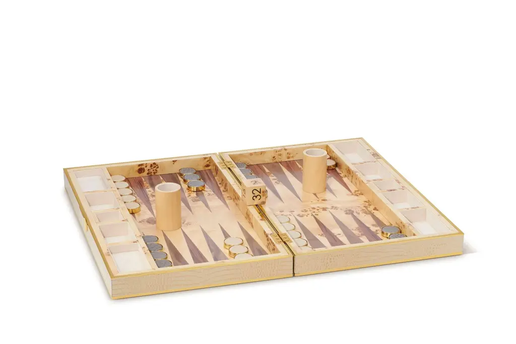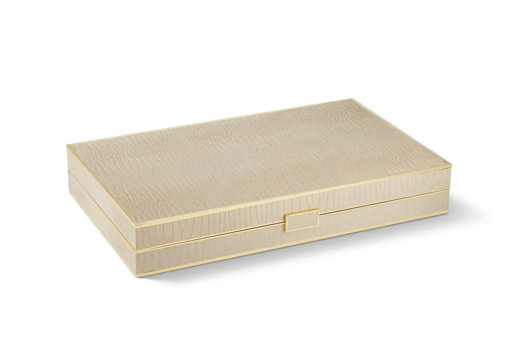 Aerin Croc Leather Backgammon Set With Dice, Fawn