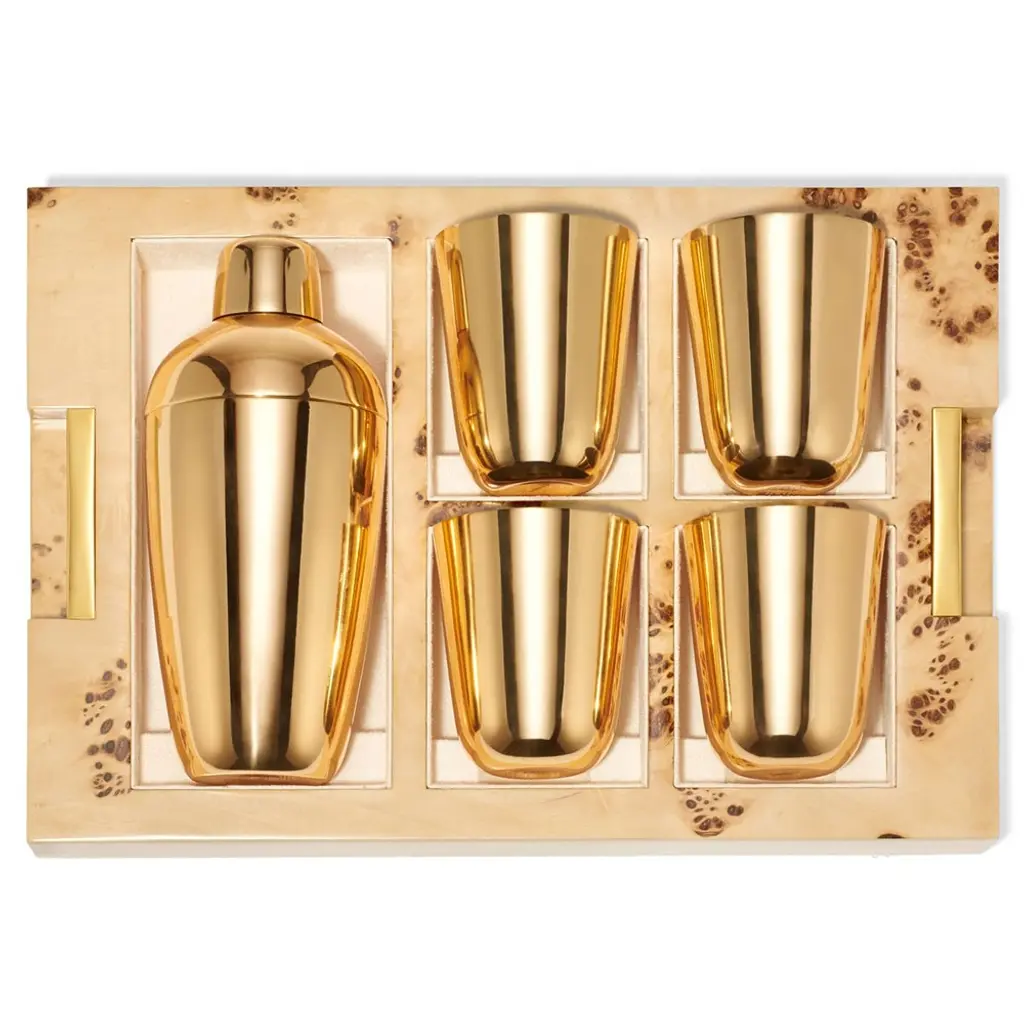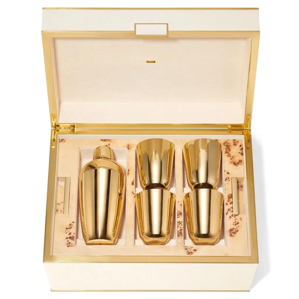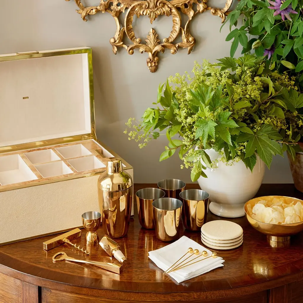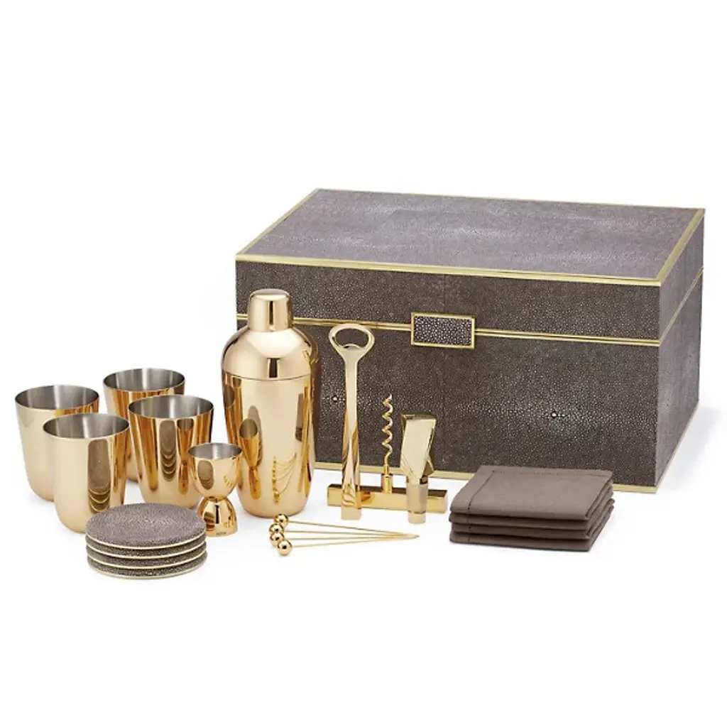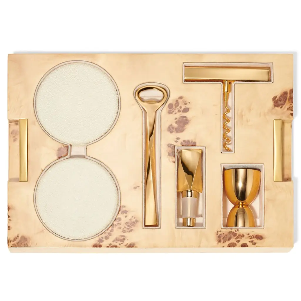 Aerin Updated Traditional Cream Embossed Shagreen Bar Tool Set