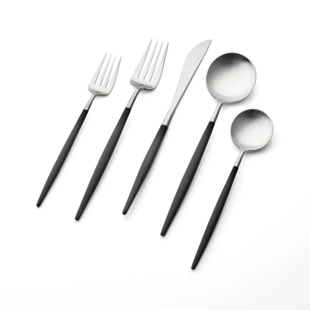 Aerodynamic and ultra-modern European flatware joins sculptural brushed heads to slender, tapered handles in matte black polymer.We have a few simple tips for how to set a table.
