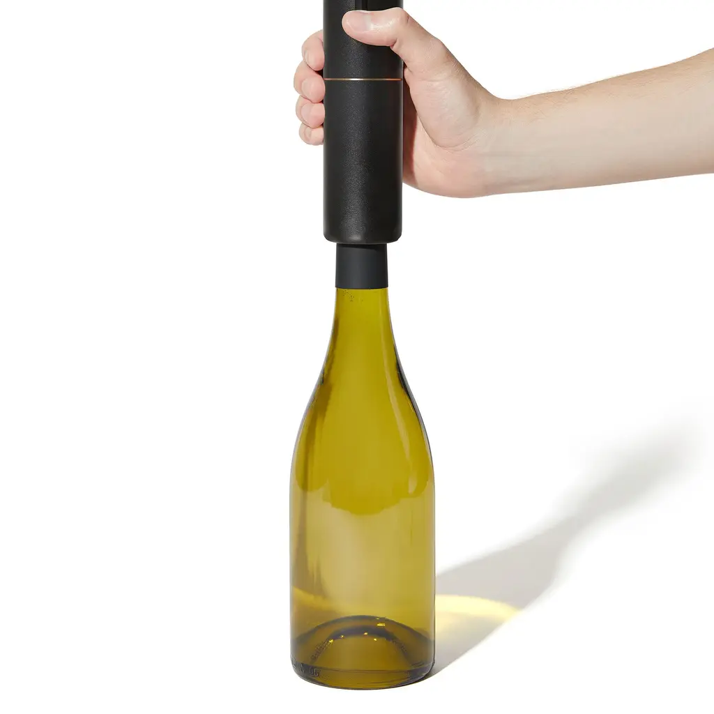 Many wines need to breathe before they present their fullest flavor. This effortless aerator fits right on the bottle, dispensing and aerating wine tap-style with just a press of a button.