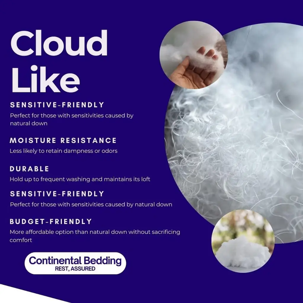 Refresh your sleep setup with the Continental Bedding Affinity Collection Down Alternative Pillows - 2 Pack. Designed for all sleep styles, these plush pillows are filled with a premium down alternative fiber that provides soft, supportive comfort without the allergens. Each pillow is wrapped in a breathable 100% cotton shell, offering a cool and smooth surface throughout the night. Whether you're outfitting your own bed, a dorm room, or a guest space, this convenient 2-pack is a practical and cozy upgrade. Available in Standard, Super Standard, Queen, and King sizes, these pillows are machine washable, making them easy to keep clean and fresh. The Affinity Collection brings dependable comfort and classic style to any bedding arrangement.