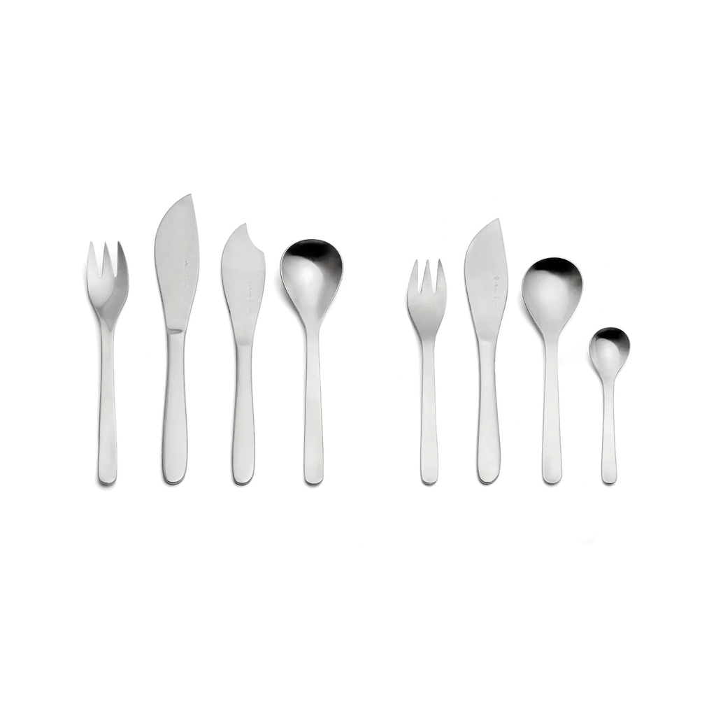 Afra & Tobia Scarpa Set Of Le Due Facce Della Luna For CassinaThe Le Due Facce della Luna flatware service by Afra and Tobia Scarpa brings to the table a story of Italian manufacturing excellence, creativity and design. The collection that Cassina rediscovers and re-edits focuses on the precision and durability of stainless steel in an ideal blend of beauty and function.A 24-piece flatware service in stainless steel: the blades of the knives are razor sharp and the forks and spoons flawlessly forged and minted. Stainless steelPolished finish.Fork, knife and table spoon; fruit fork and knife; tea/coffee spoon. Cassina rediscovers and re-issues Le Due Facce della Luna, the flatware service designed in 1979 by Afra and Tobia Scarpa. A 24-piece set of flatware in stainless steel: a perfectly balanced blend of beauty and function, a masterpiece of creativity and dedication.Important information regarding images of products:Please note that some of the images show other colors and variations of the model, these images are only to present interior design proposals. The item that is selling is on the first image.Important information regarding color(s) of products:Actual colors may vary. This is due to the fact that every computer monitor, laptop, tablet and phone screen has a different capability to display colors and that everyone sees these colors differently. We try to edit our photos to show all of our products as life-like as possible, but please understand the actual color may vary slightly from your monitorAbout The Designer: Architect and designer Tobia Scarpa graduated in 1969 at the University of Venice and in the same year won a “Compasso d’Oro” prize for his “Soriana” armchair designed for Cassina. He has since been awarded many other design prizes and many of his designs can also be found on show in some of the world’s key museums, including his ‘Libertà’ chair on show at the Louvre.As an architect he has worked for both public and private clients including the Benetton Group for whom he famously designed the industrial area and production plants in Castrette di Villorba (Treviso). Even today, the Benetton facilities are still held up as an example of aesthetic-functional excellence, one of the world’s most exciting pieces of industrial architectureAbout The Manufacturer:Established in 1927 by Cesare and Umberto Cassina in Meda, Italy, Cassina launched industrial design in Italy in the 1950s, based on a totally innovative approach that marked the transition from artisan production to mass production. With a mindset focused on research and innovation, Cassina combines technology and long-standing artisan craftsmanship. Memory, research, innovation. Cassina blends traditional skills and superior productivity, meticulous attention to detail and passion, uniqueness and experimentation, wellbeing and sustainability. Today, the company continues to address new lifestyles with the creation of complete, harmonious interior decor solutions that embody the best contemporary design for all areas of the home.