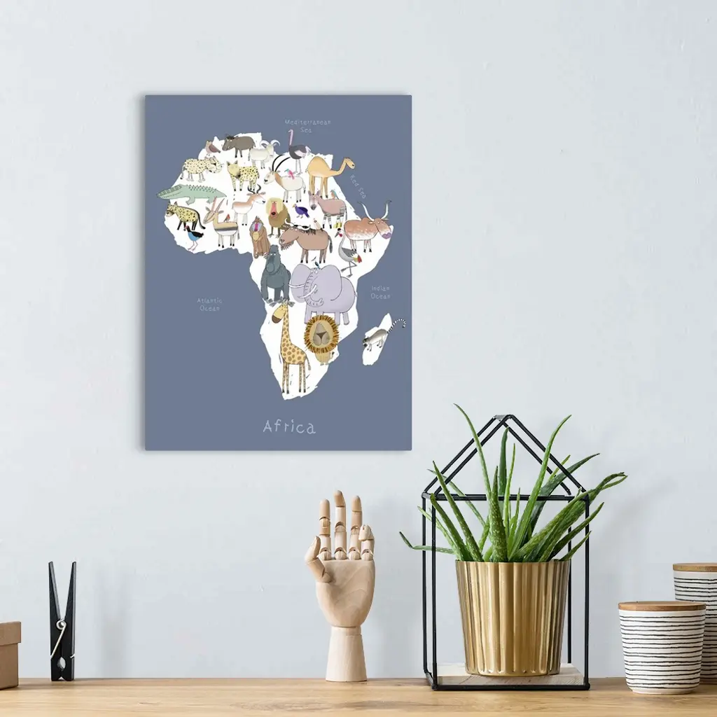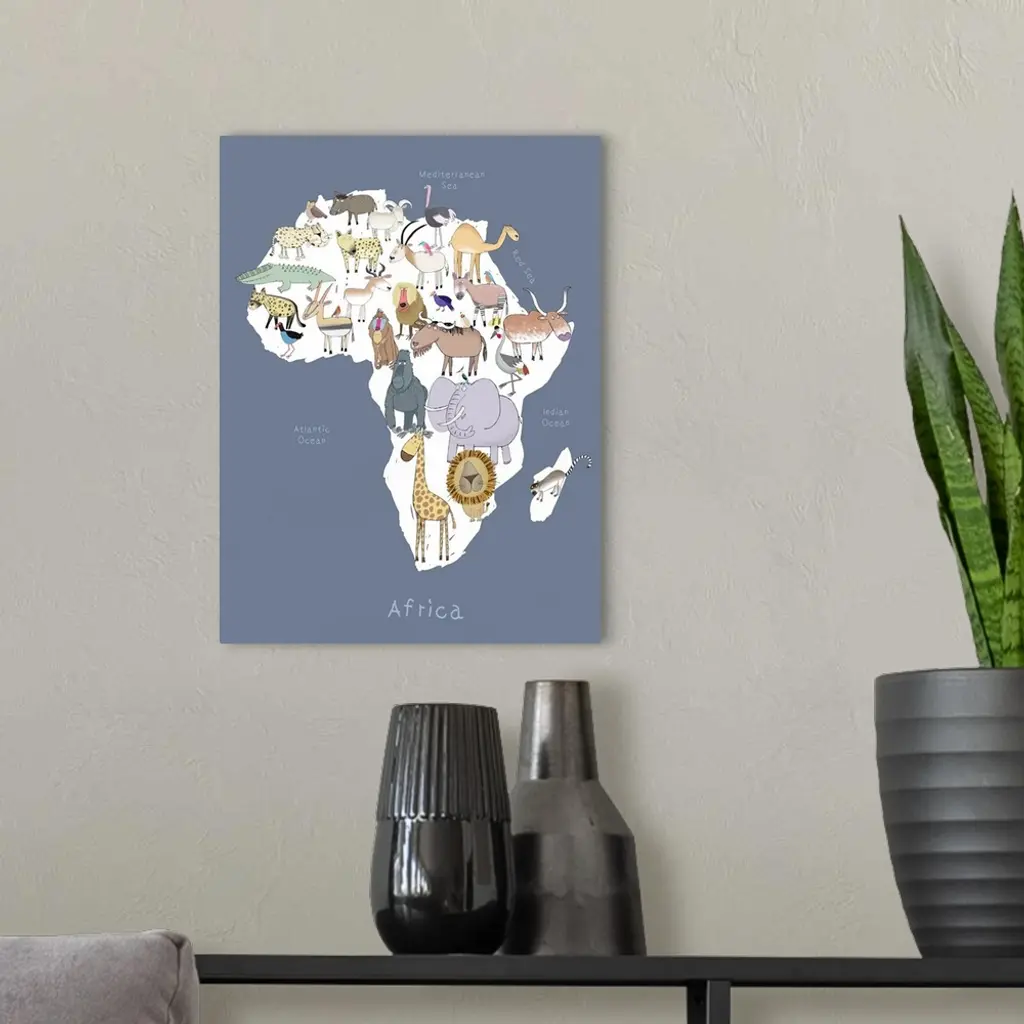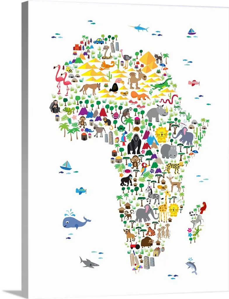 Africa Map Of Animals wall art for home and office decor. Discover canvas art prints, photos, mural, big canvas art and framed wall art in GreatBigCanvas.com's varied collections.