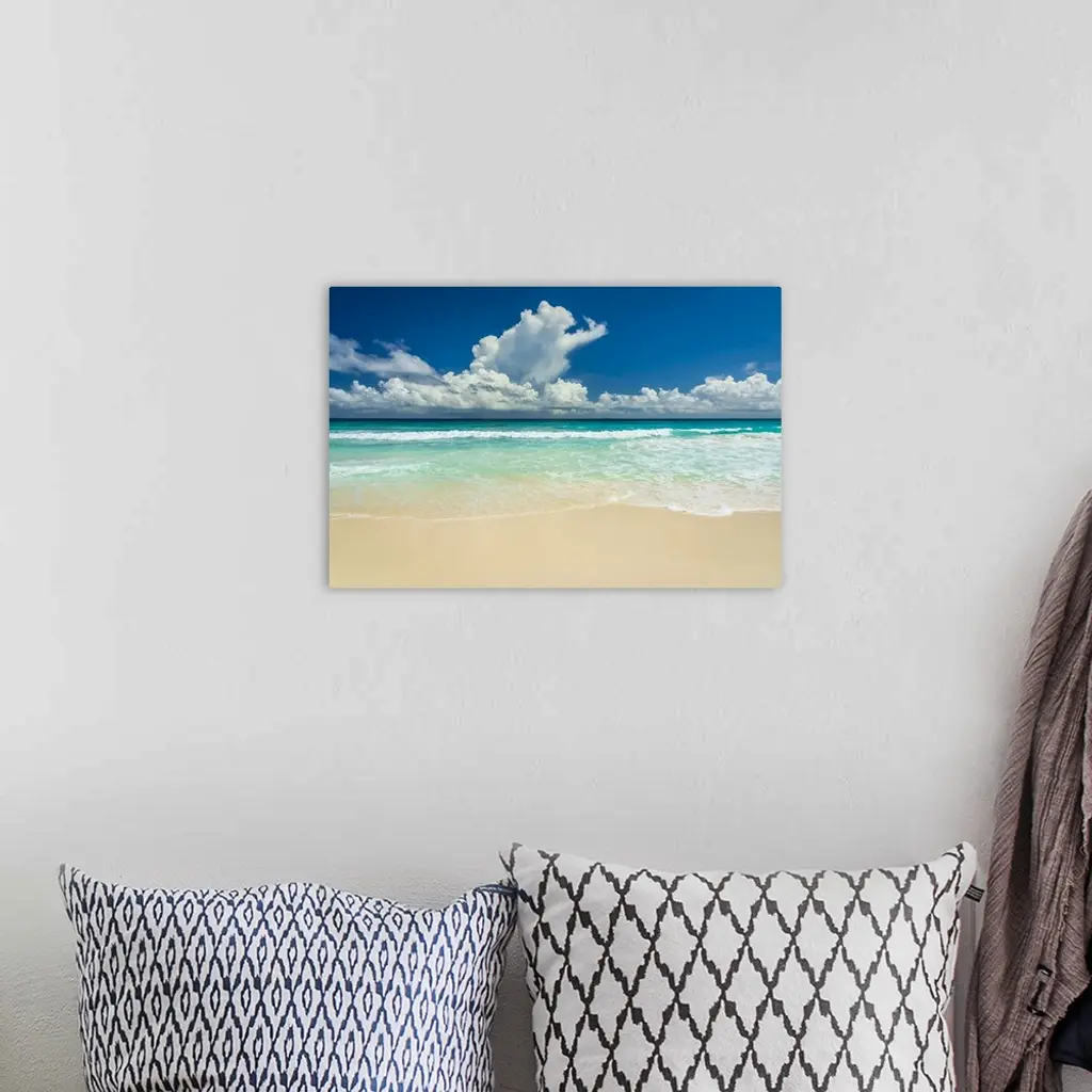 Africa, Seychelles, La Digue, Beach, Sand, Waves, Clouds At Grand Anse