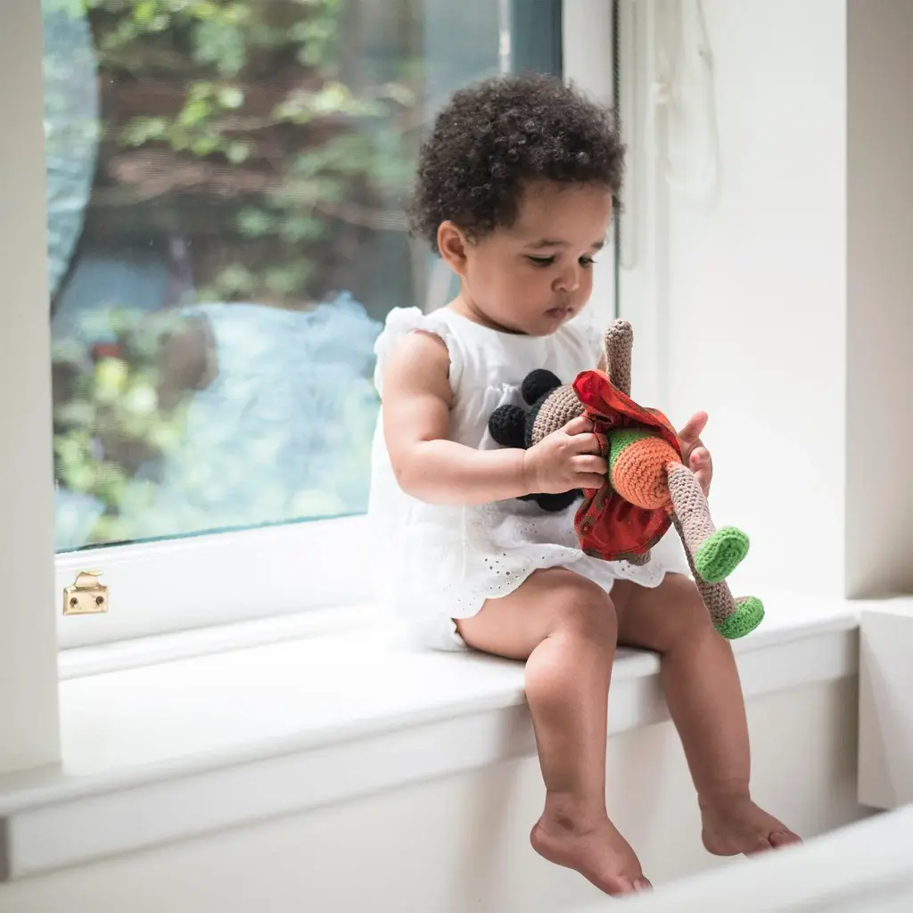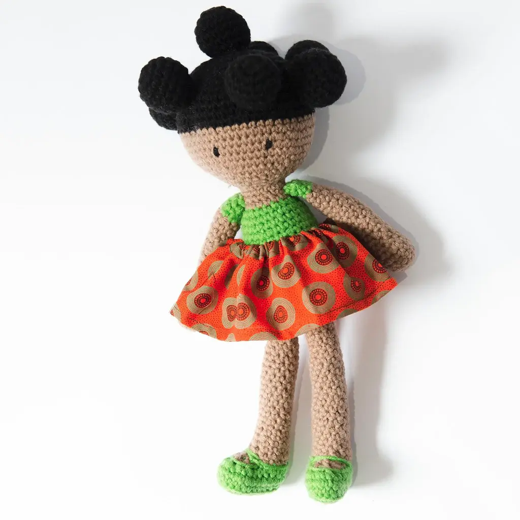 The African Dolls Lolo is handmade by women weavers in South Africa. The baby doll is made out of soft cotton, making this crochet doll extremely loveable. The dolls are dressed in popular Seshweshwe prints from Lesotho. The African dolls make for a great gift suitable for babies and kids to give at a baby shower or birthday and will be treasured for years to come.