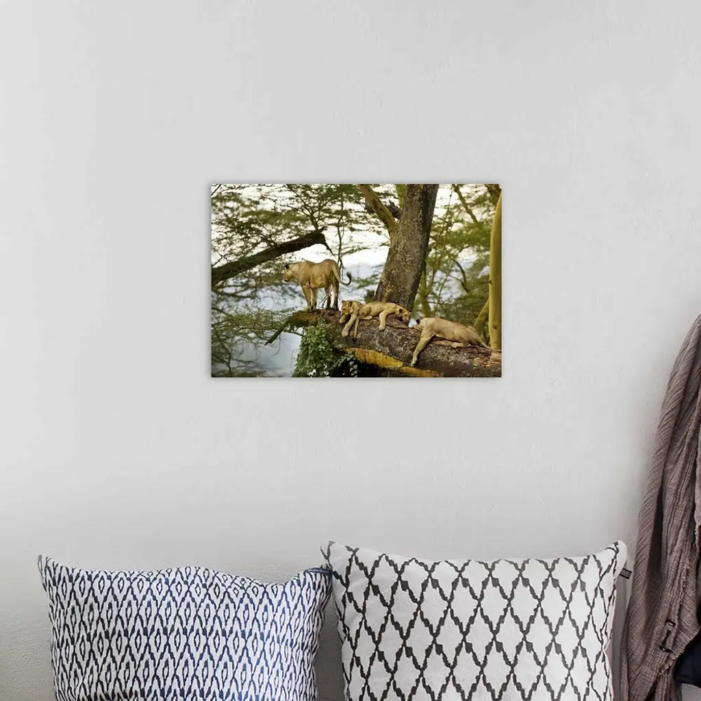 African Lions on a Limb wall art for home and office decor. Discover canvas art prints, photos, mural, big canvas art and framed wall art in GreatBigCanvas.com's varied collections.