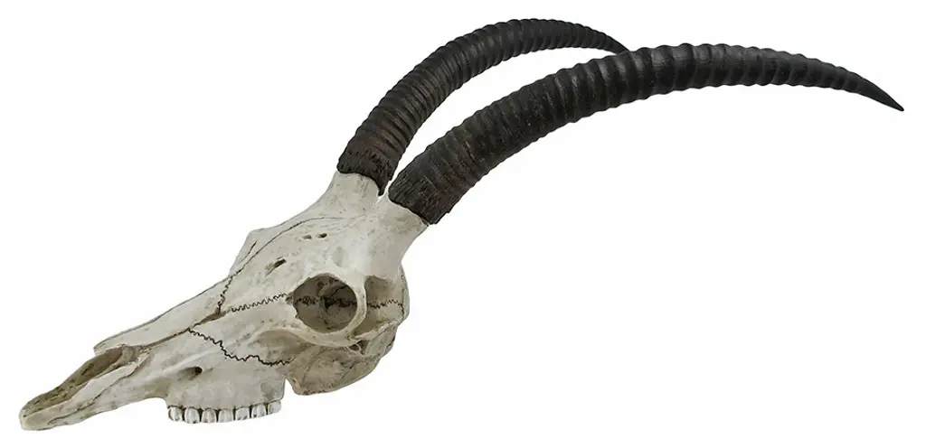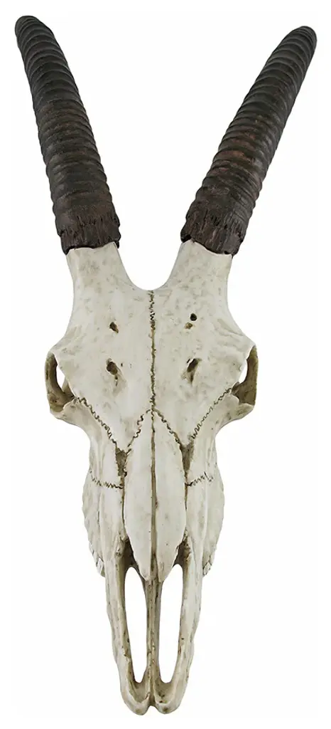 23 in. Tall, 10 in. Wide, 5 1/4 in. DeepCold Cast ResinWonderfully DetailedHanging Hardware IncludedThis amazing sable skull looks quite real, and adds a wonderful accent to rooms with African themed decor. Made of cold cast resin, it measures 23 inches tall, 10 inches wide, and 5 1/4 inches deep. It easily mounts to the wall with a single nail or screw by the hanger on the back. NOTE: Hanging hardware is included.