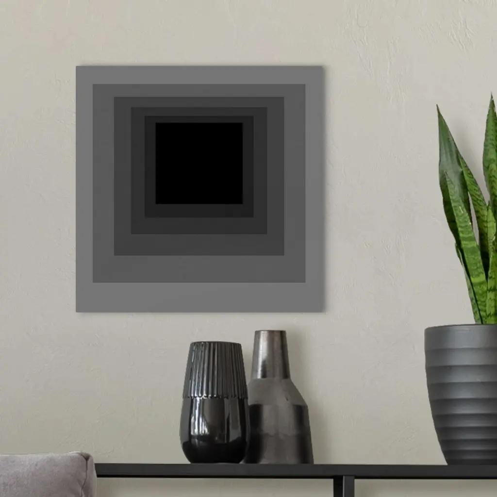 This square shaped decorative accent is a series of squares stack inside each other slowly transitioning to darker shades of gray.