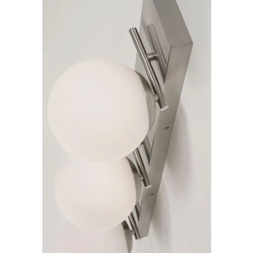 Brighten up your guest or master bathroom space with dazzling lighting, courtesy of the AFX Metropolitan 38" Led Vanity Light. This dynamic bathroom light is tailor-made to sit atop a vanity mirror. Thanks to the integrated LED engine and sleek glass shade, this fixture releases light that effortlessly reaches the far corner of your space. Use this light to transform your large and medium-sized bathroom spaces. cETLus,FCC Modern appeal, LED vanity with white glass globe diffusers. Metal construction. Available in three finishes. Integrated LED Integrated LED.,