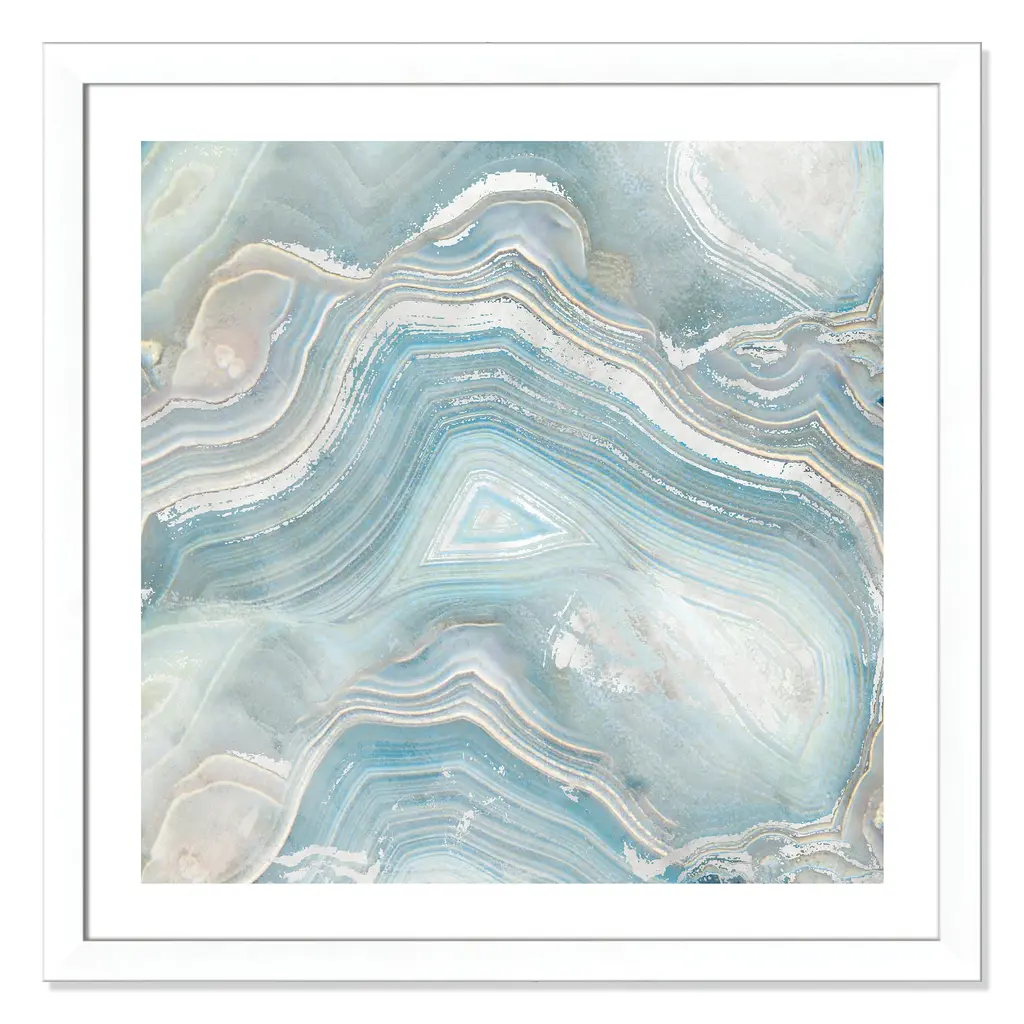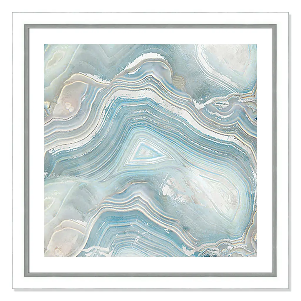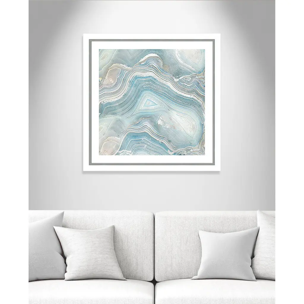 Add a contemporary touch to your home with 'Agate in Blue I', a mesmerizing agate geode image featuring a cool color palette of silver and blue. This piece is rich in color and texture to create depth and dimension in any space in your home. Finished in a modern frame made of PS materials, this is the perfect addition to your walls. Archival fine art giclée print on acid-free and lignin-free 100% cotton rag paper; image includes a bright white self-matting border Printed with gallery-quality inks using the finest giclée print technology for unsurpassed color gamut and clarity Lightweight and finished under shatter-resistant acrylic; hanging hardware attached for easy and secure installation Handcrafted in the USA and ships with a Certificate of Authenticity Lightweight and finished under shatter-resistant acrylic