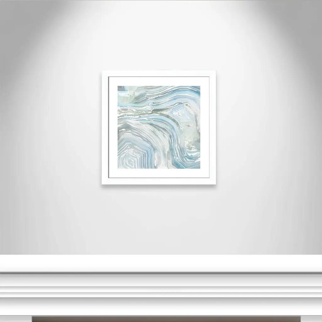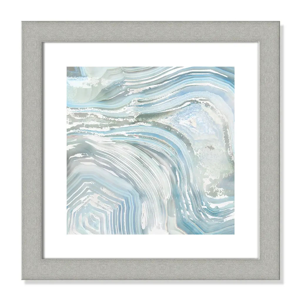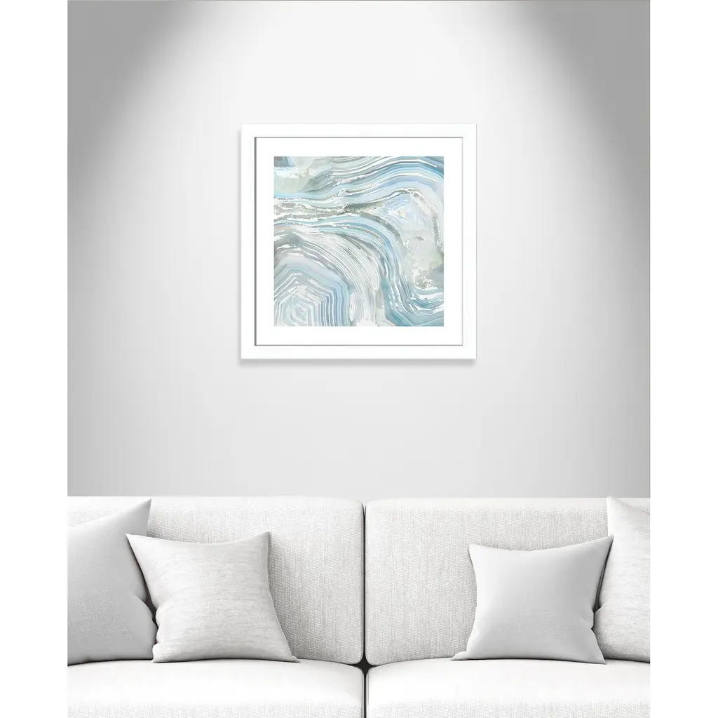 Add a contemporary touch to your home with 'Agate in Blue II', a mesmerizing agate geode image featuring a cool color palette of silver and blue. This piece is rich in color and texture to create depth and dimension in any space in your home. Finished in a modern frame made of PS materials, this is the perfect addition to your walls. Archival fine art giclée print on acid-free and lignin-free 100% cotton rag paper; image includes a bright white self-matting border Printed with gallery-quality inks using the finest giclée print technology for unsurpassed color gamut and clarity Lightweight and finished under shatter-resistant acrylic; hanging hardware attached for easy and secure installation Handcrafted in the USA and ships with a Certificate of Authenticity Lightweight and finished under shatter-resistant acrylic