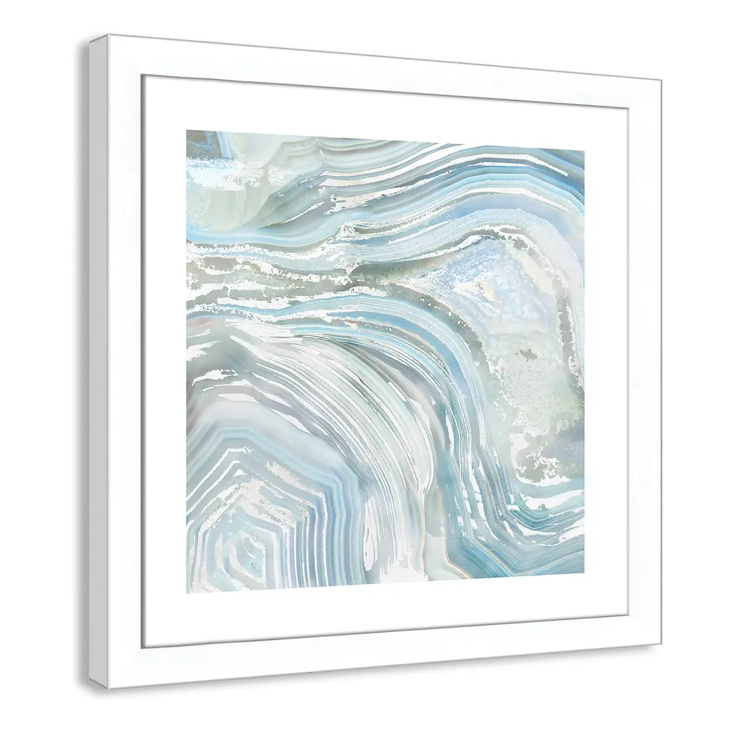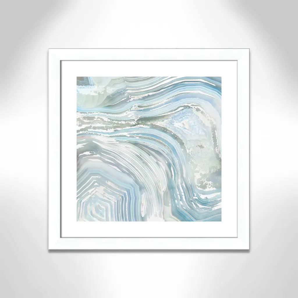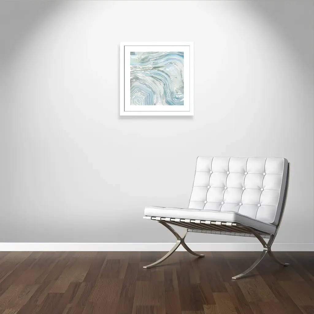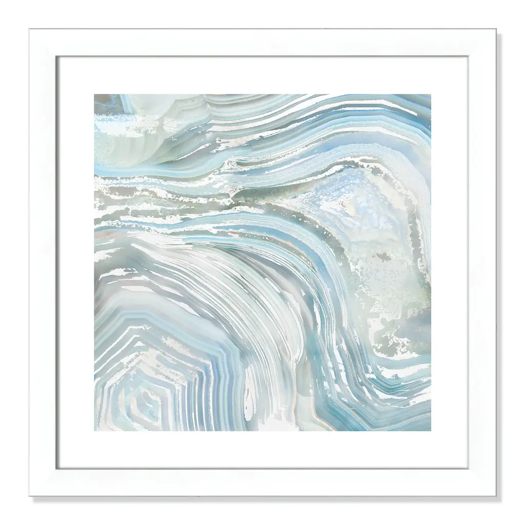 Add a contemporary touch to your home with 'Agate in Blue II', a mesmerizing agate geode image featuring a cool color palette of silver and blue. This piece is rich in color and texture to create depth and dimension in any space in your home. Finished in a modern frame made of PS materials, this is the perfect addition to your walls. Archival fine art giclée print on acid-free and lignin-free 100% cotton rag paper; image includes a bright white self-matting border Printed with gallery-quality inks using the finest giclée print technology for unsurpassed color gamut and clarity Lightweight and finished under shatter-resistant acrylic; hanging hardware attached for easy and secure installation Handcrafted in the USA and ships with a Certificate of Authenticity Lightweight and finished under shatter-resistant acrylic