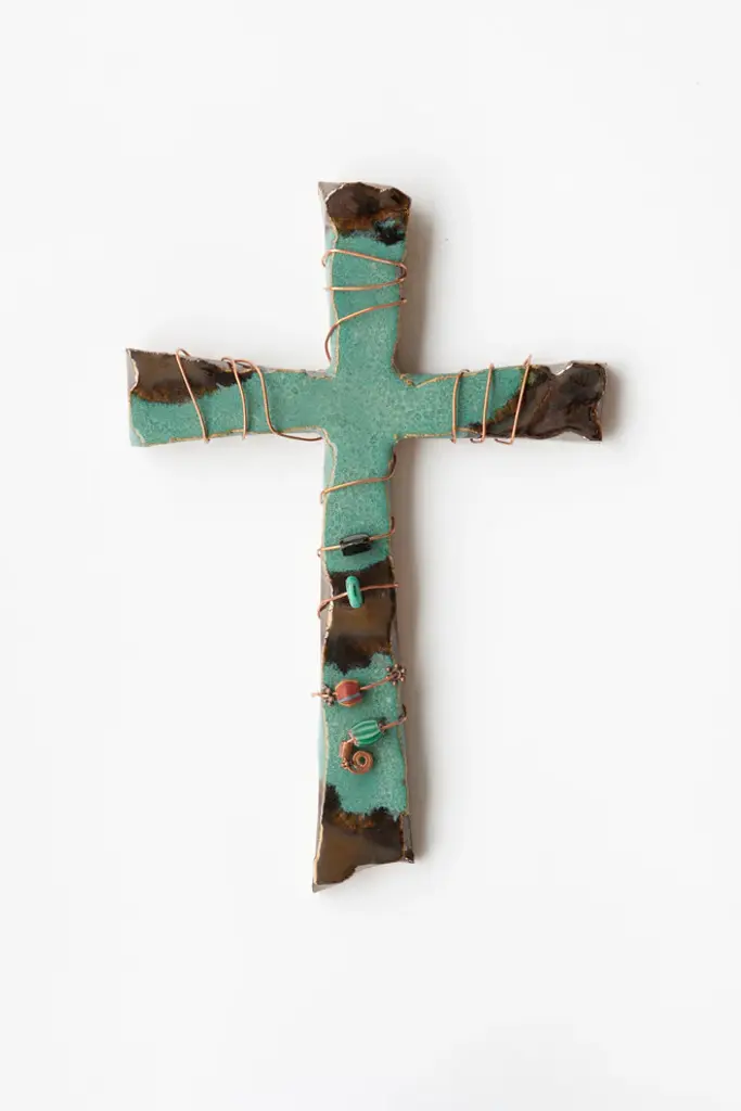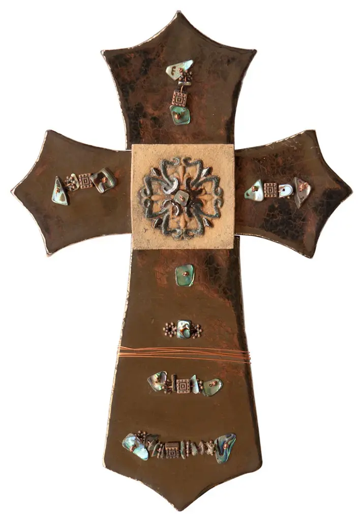 Handcrafted of quality materials, the Handmade Copper and Clay Cross is the perfect way to add a touch of decor to your space with a natural feel. This piece features copper wire and mother of pearl beads in a cool tone to complement the cross''s natural patina. Every detail works cohesively with one another, creating a gorgeous piece that will bring a new warmth to your space! This handmade cross measures 6 inches wide and 8.5 inches high and is ideal with other decorative items on a gallery wall or for placing above your bed.