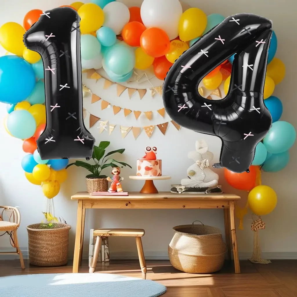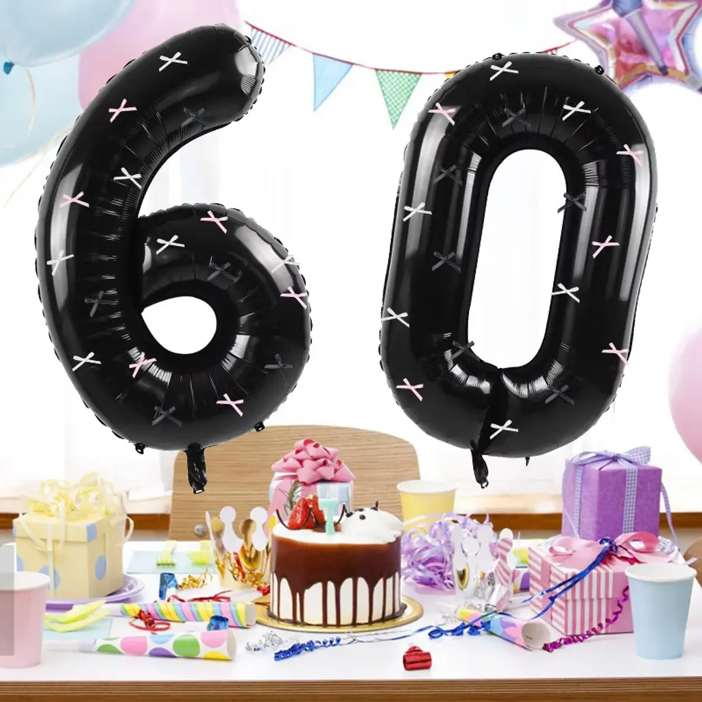 SpecificationsMaterial: AluminumColor: BlackSize: 101.6cm/40inackage contents: 1pc Black Number Balloons with Bow Ribbon