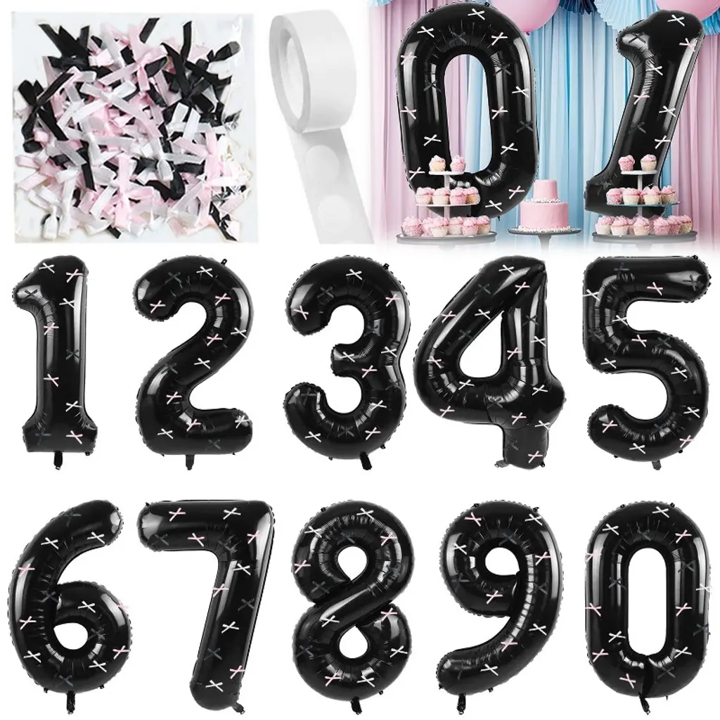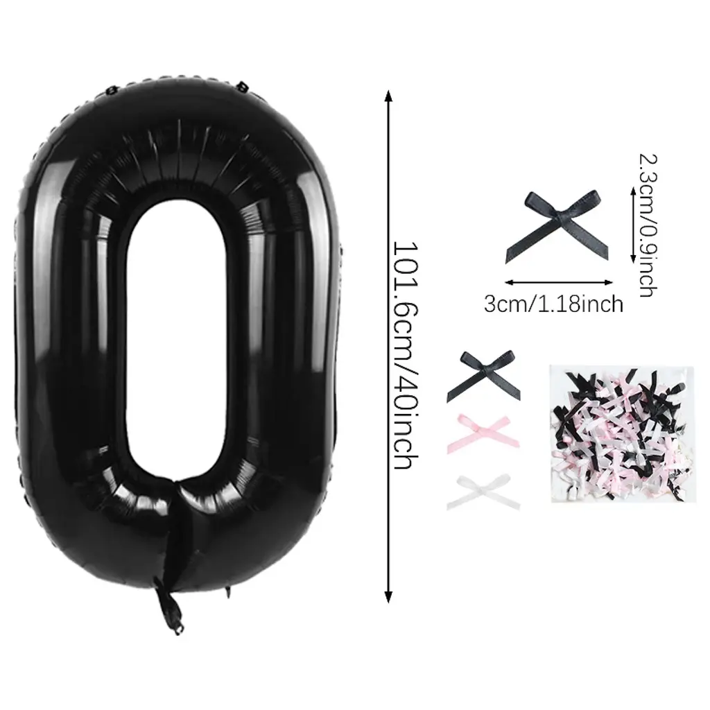Aghana Digitals 40 Inch Black Aluminum Number Balloon With Ribbon Bow & Glue Point
