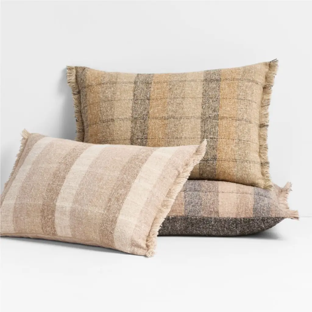 We love the way our Agnes pillow ties together the rest of a throw pillow collection. Melange-woven for a soft and subtle look, the tonal wool blend is patterned in wide vertical stripes and horizontal ticking stripes (or flip it over to show off the heathered solid side). Fringes finish two edges of the pillow for a final touch of coziness. Our exclusive lumbar throw pillow includes your choice of a plush feather-down or lofty down-alternative insert.