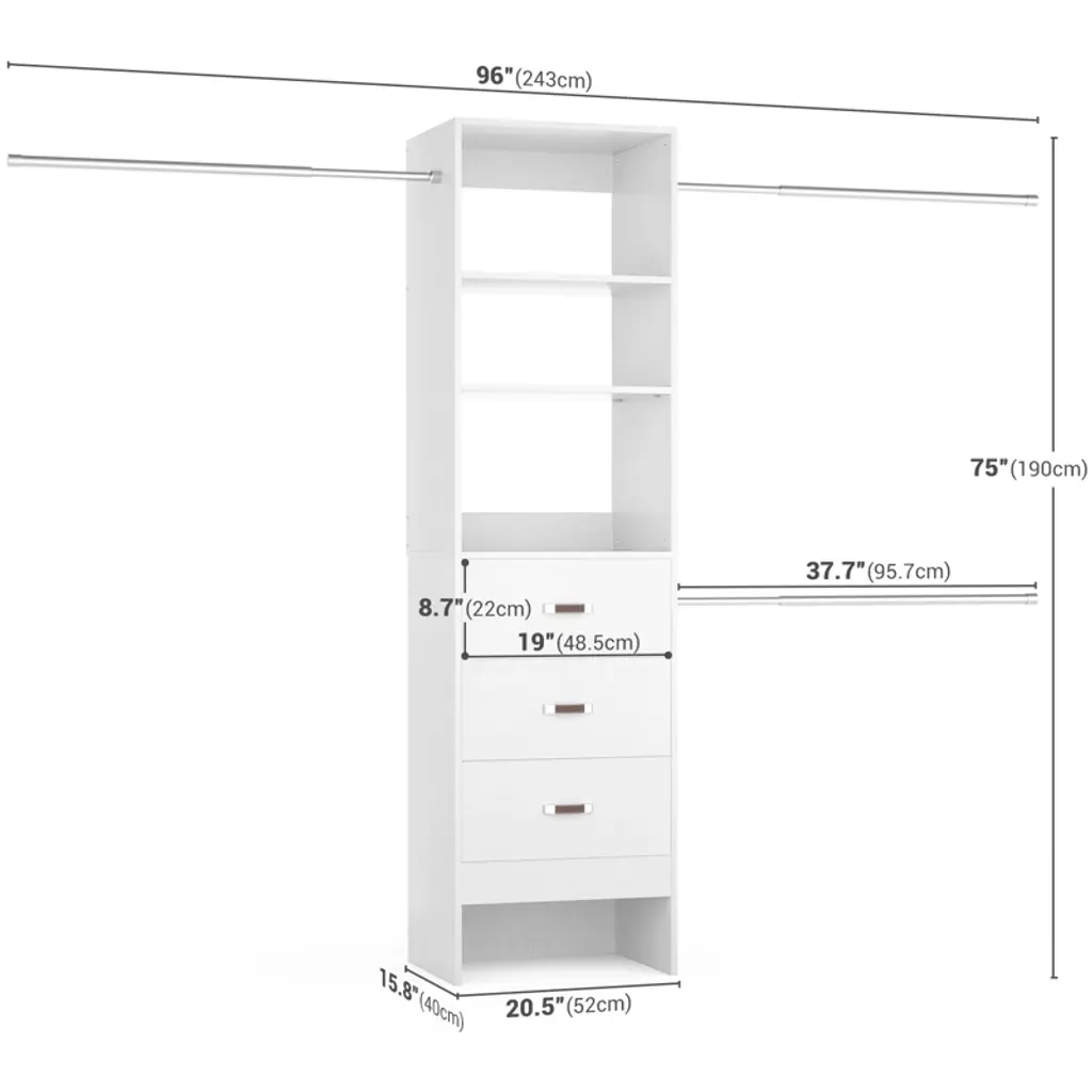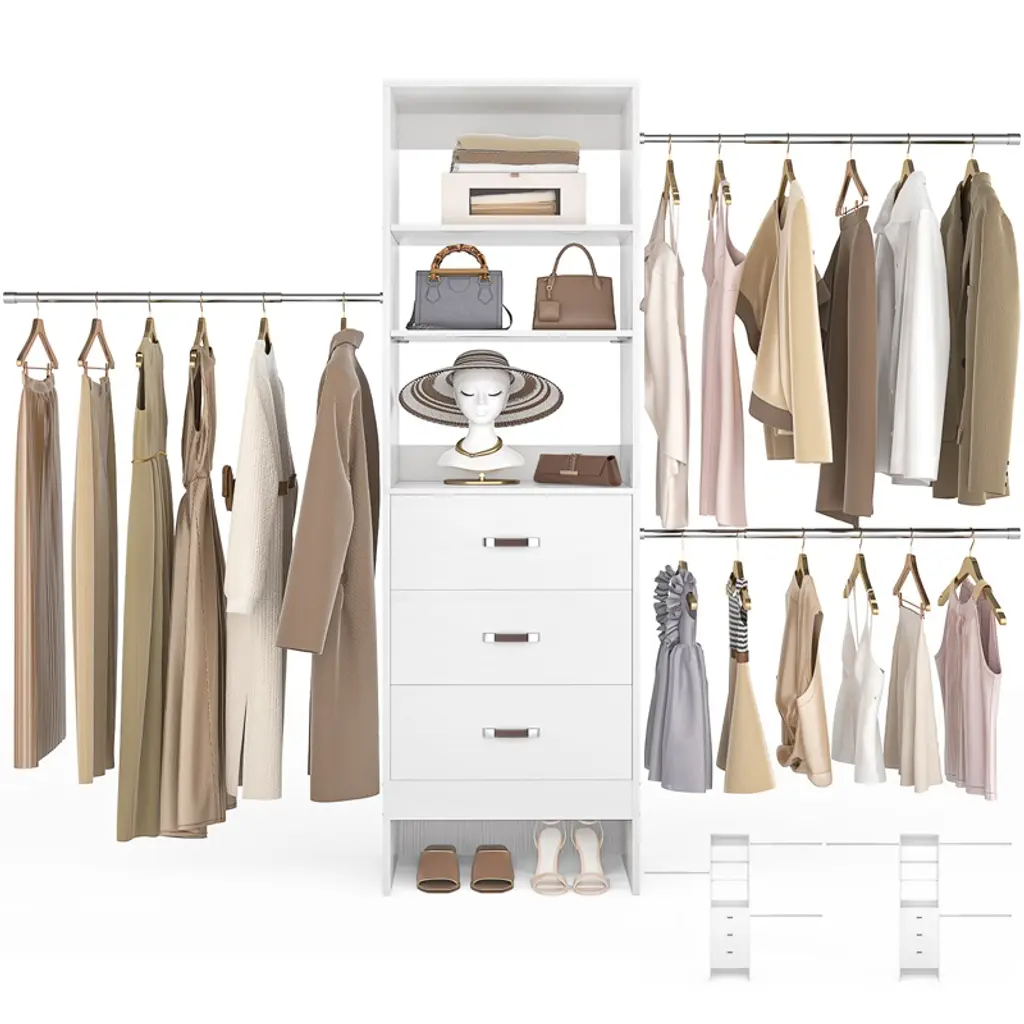 Aheaplus 96'' Adjustable Closet System With 3 Drawers, Closet Organizer With Hanging Rods And Storage Shelves