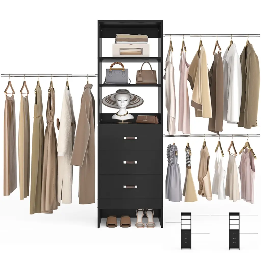 Aheaplus 96'' Adjustable Closet System With 3 Drawers, Closet Organizer With Hanging Rods And Storage Shelves
