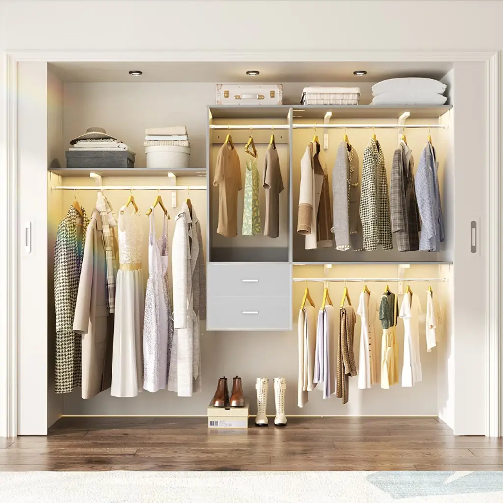 Aheaplus Closet System With 2 Drawers,wardrobe Clothes Organizer With 4 Hanging Rods