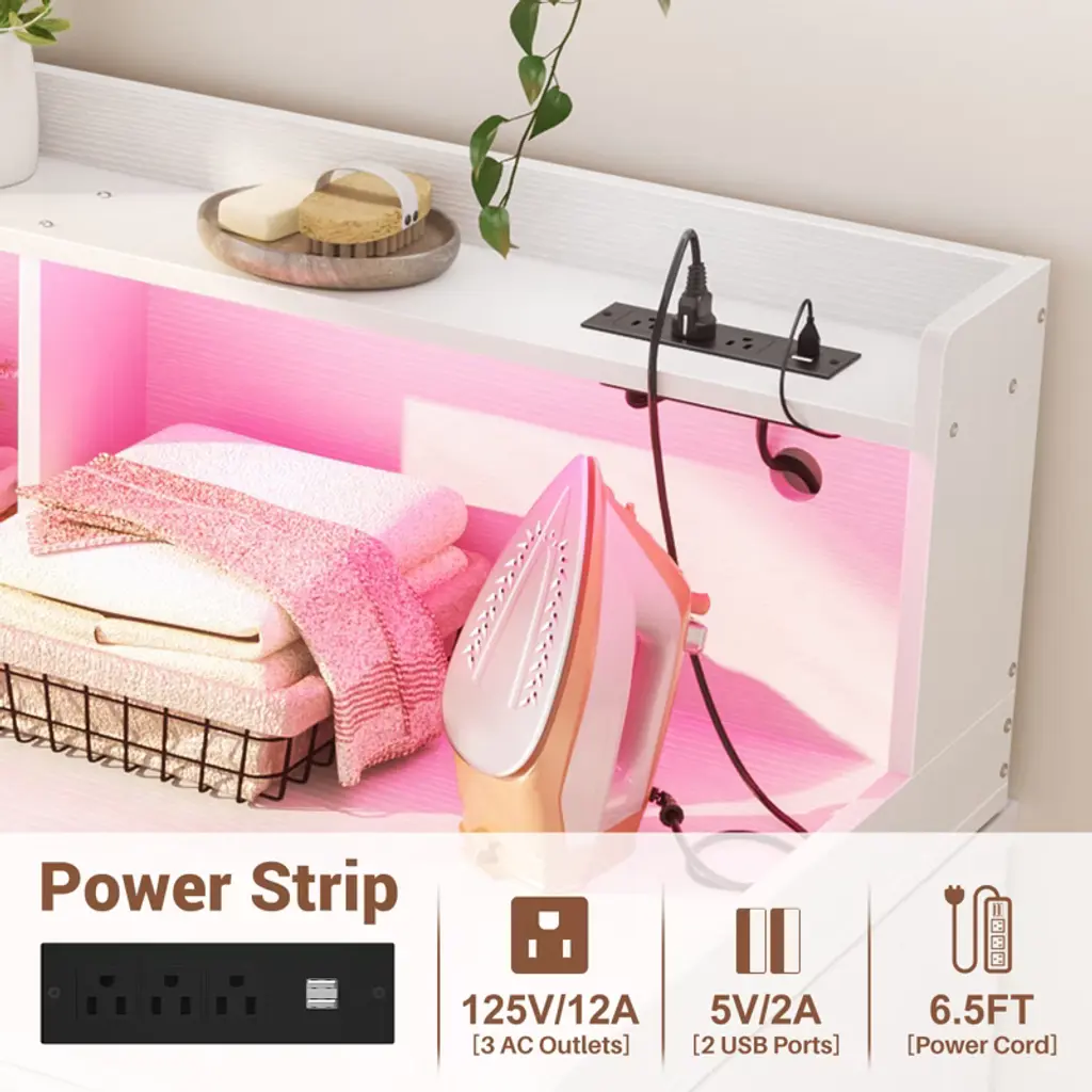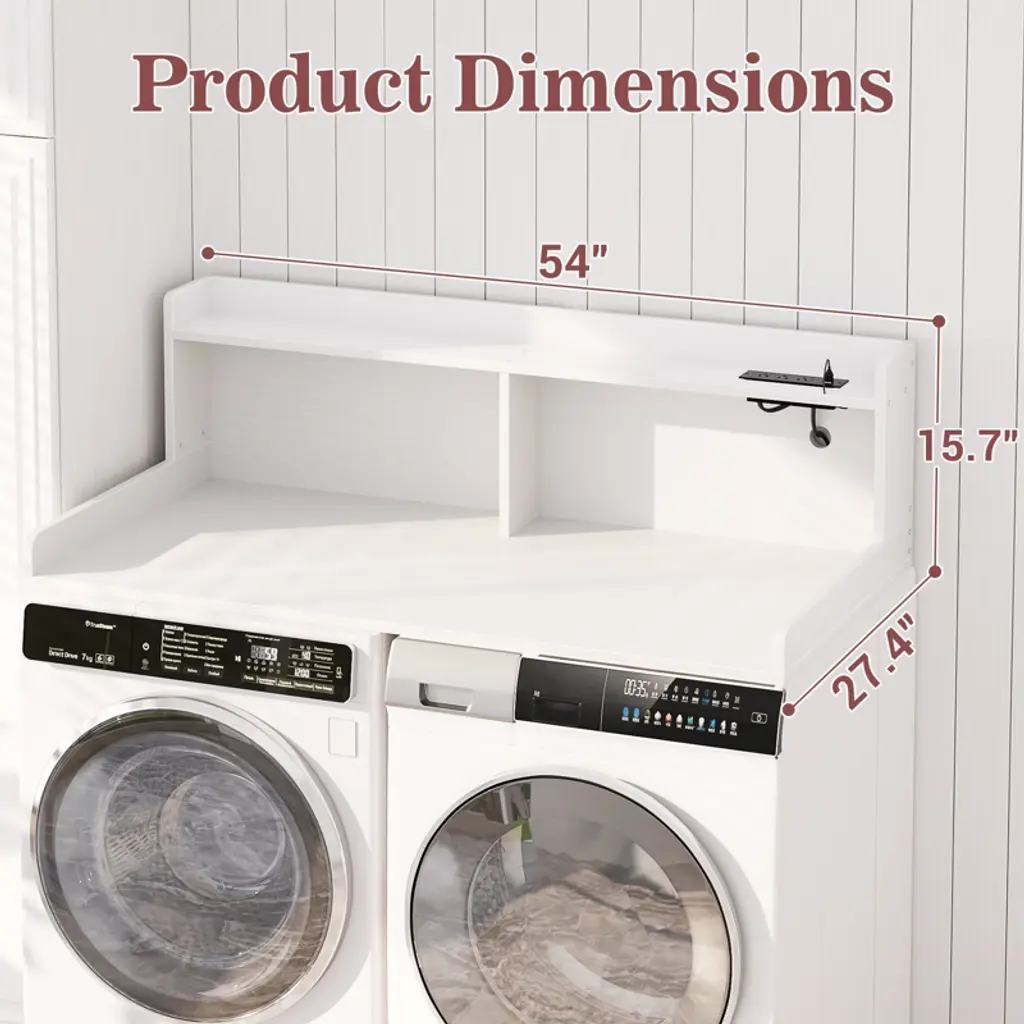 Aheaplus Countertop Over Washer And Dryer With Top Storage Shelves And Charging Station For Laundry Room
