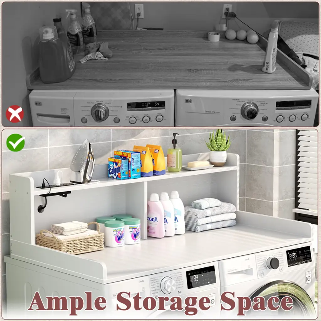 Transform your laundry room with the revolutionary Laundry Countertop over Washer and Dryer, a stylish and innovative solution. It transforms typically underutilised spaces into multifunctional areas that enhance both efficiency and aesthetics. Measuring 54¡± W x 15.7¡± H x 27.4¡± D, it provides ample surface area for folding clothes, sorting laundry and organising cleaning supplies. The curved edge design prevents items from slipping off and adds a touch of elegance and sophistication. The built-in electrical outlets with a 6.5-foot cord provide easy access to power for your devices, making your laundry room more practical and efficient. This countertop is the perfect addition to any home, combining functionality with a sleek design to create a more organised and enjoyable laundry experience.