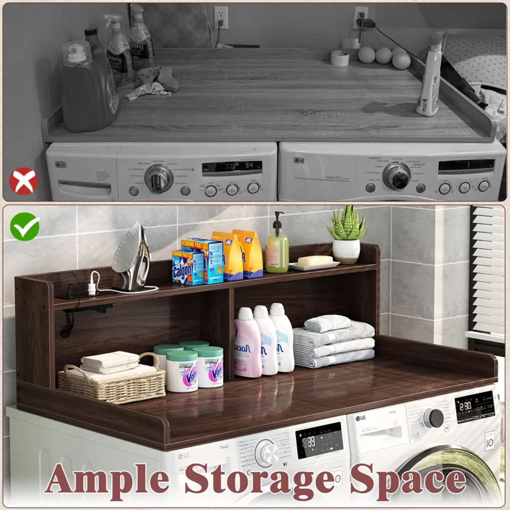 Aheaplus Countertop Over Washer And Dryer With Top Storage Shelves And Charging Station For Laundry Room