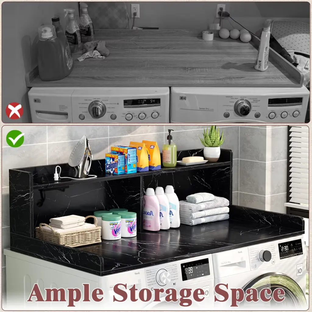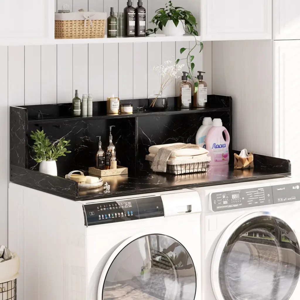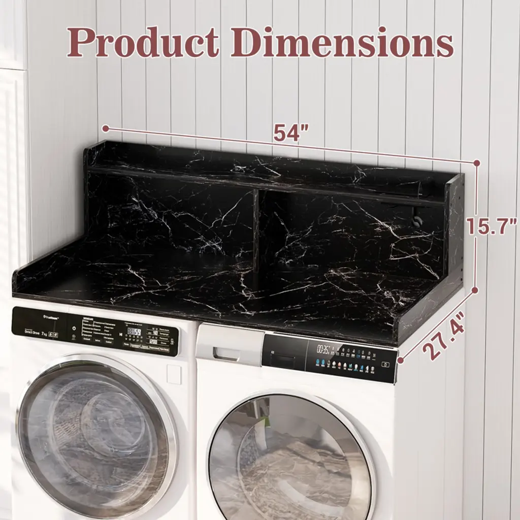 Transform your laundry room with the revolutionary Laundry Countertop over Washer and Dryer, a stylish and innovative solution. It transforms typically underutilised spaces into multifunctional areas that enhance both efficiency and aesthetics. Measuring 54¡± W x 15.7¡± H x 27.4¡± D, it provides ample surface area for folding clothes, sorting laundry and organising cleaning supplies. The curved edge design prevents items from slipping off and adds a touch of elegance and sophistication. The built-in electrical outlets with a 6.5-foot cord provide easy access to power for your devices, making your laundry room more practical and efficient. This countertop is the perfect addition to any home, combining functionality with a sleek design to create a more organised and enjoyable laundry experience.